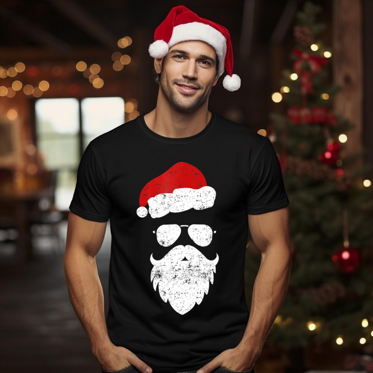 Get ready to spread holiday cheer with our Hipster Santa Beard T-Shirt! This fun and quirky design, featuring a stylish Santa complete with aviator sunglasses and a festive Christmas hat, is perfect for those who love to celebrate the season with a touch of humor. Ideal for casual gatherings, themed events, or just lounging around during the holidays, this shirt is a must-have for anyone looking to showcase their festive spirit in style. Made in the USA, this fan-made design is sure to become a favorite in your wardrobe!