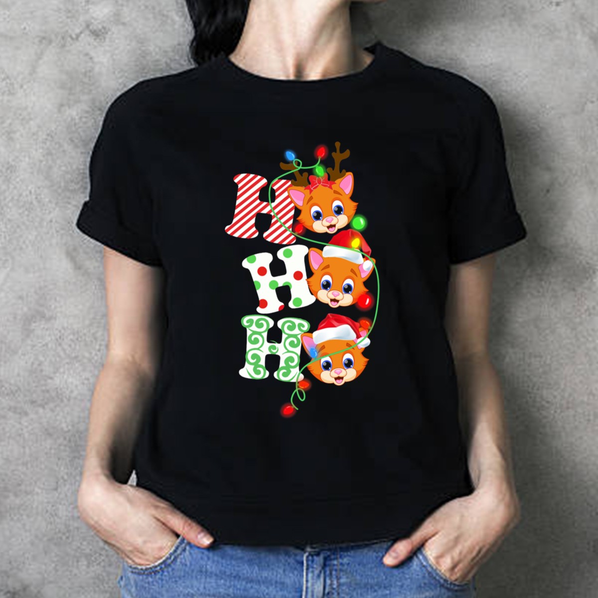 Ho Ho Ho Cats Reindeer Antlers Santa Hats Christmas Merry T-Shirt