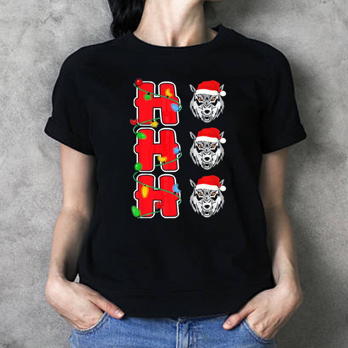 Be the first to review “Ho Ho Ho Christmas Lights Santa Hat Wolf T Shirt”
