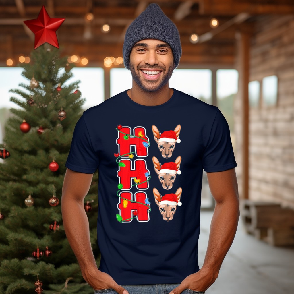 Celebrate the festive season with our whimsical “Ho Ho Ho Christmas Lights Santa Sphynx Cat” T-shirt, perfect for cat lovers and holiday enthusiasts alike. This delightful tee features a playful design that showcases a charming Sphynx cat donning a Santa hat, surrounded by twinkling Christmas lights. Ideal for casual wear, themed events, or daily outings during the holiday season, this shirt is sure to bring joy and smiles wherever you go. Made with love and printed in the USA, it’s a unique addition to any fan’s wardrobe!