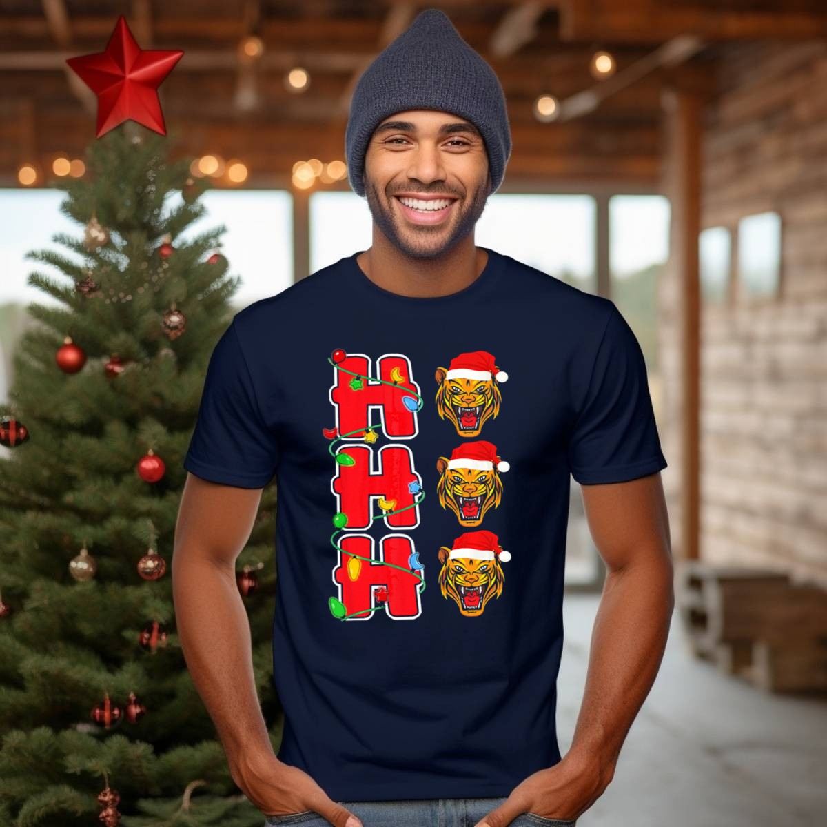 Get ready to spread holiday cheer with our Ho Ho Ho Christmas Santa Tiger Trio T-Shirt! This playful and festive design features adorable tigers dressed as Santa, perfect for animal lovers and holiday enthusiasts alike. Ideal for casual wear, themed events, or daily outings during the festive season, this shirt is not just a fashion statement, but a celebration of the joy and whimsy of Christmas. Made in the USA, it’s a unique addition to your holiday wardrobe that will surely turn heads and spark smiles!