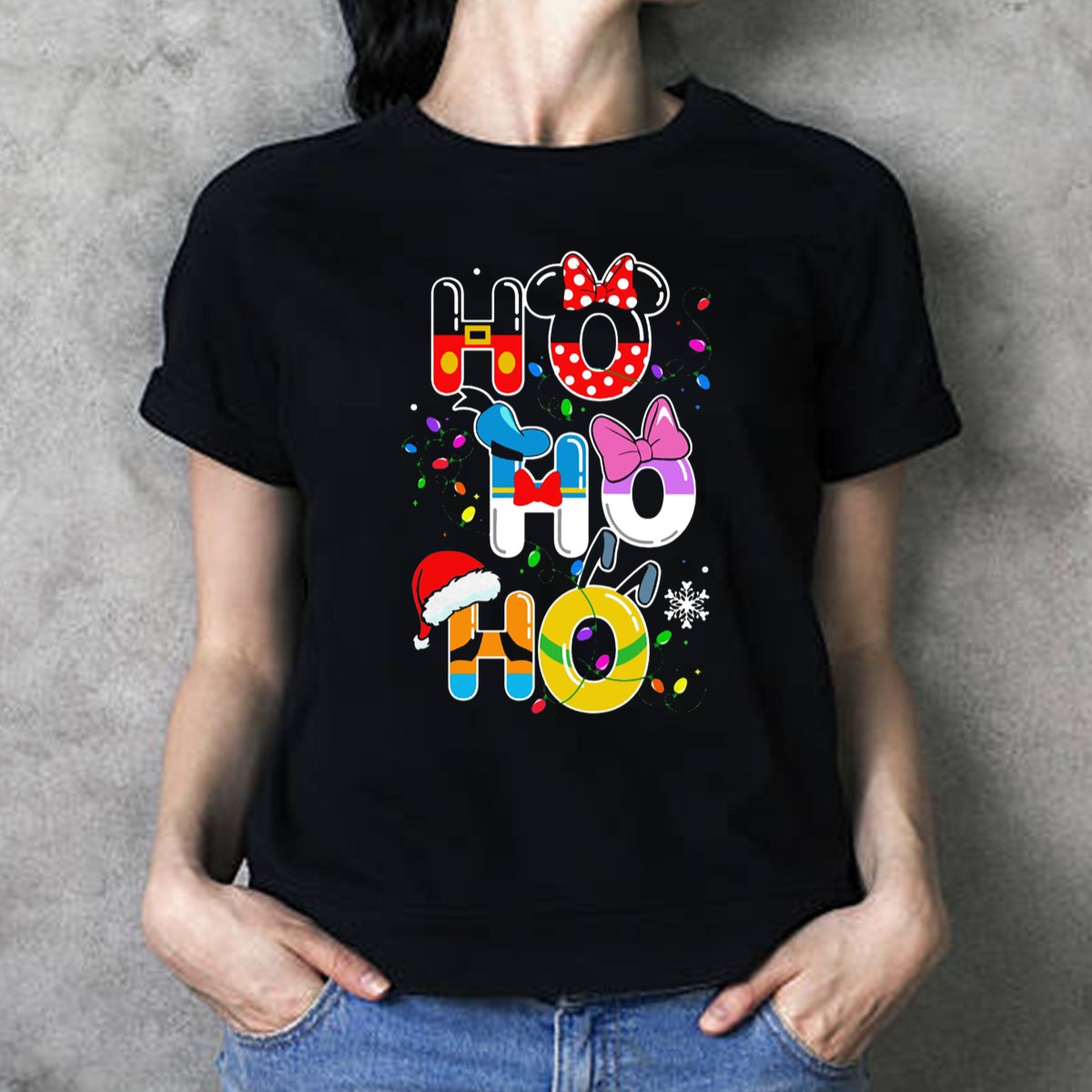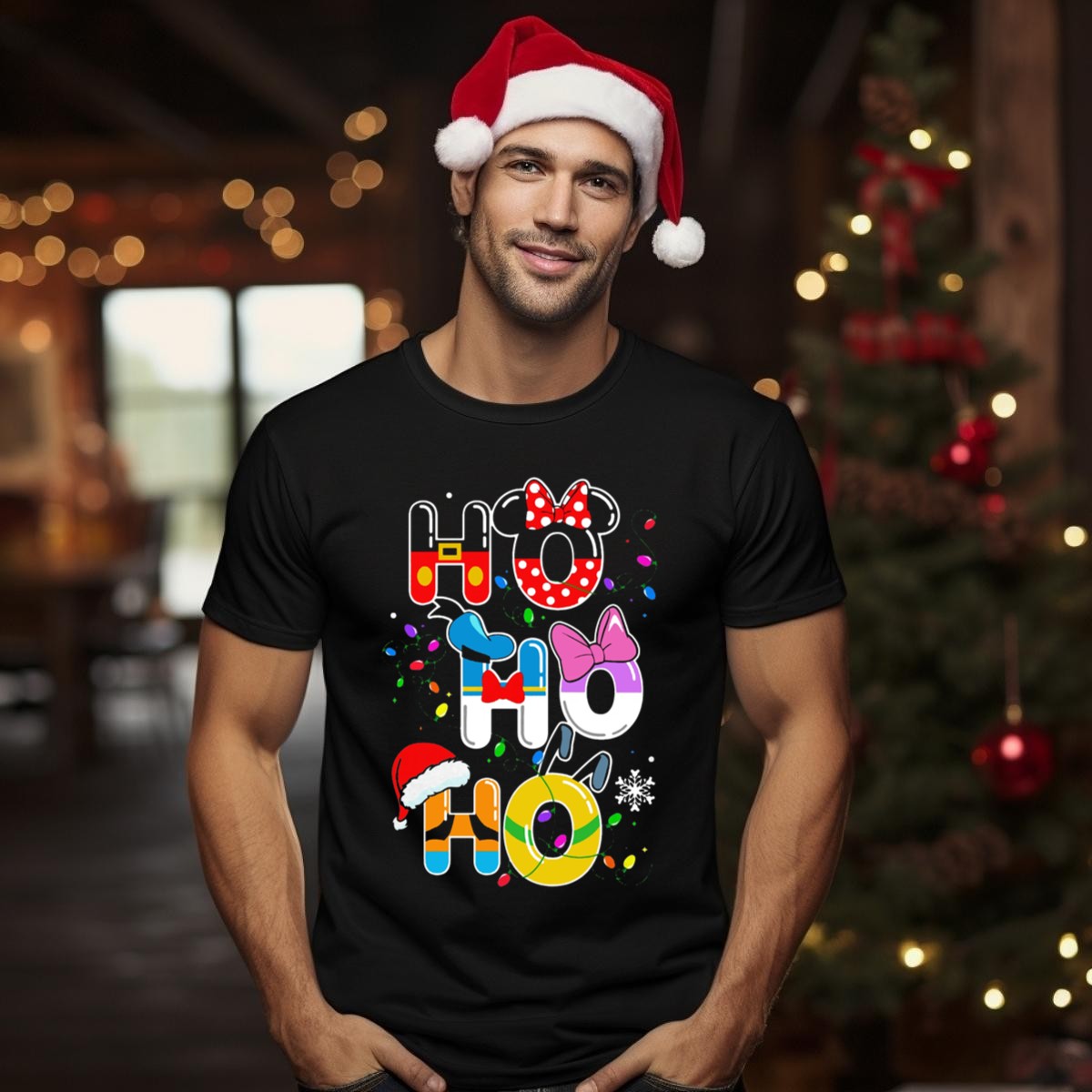 Celebrate the magic of the holiday season with our Ho Ho Ho Disney T-shirt featuring Mickey, Minnie, Donald, Daisy, Goofy, and Pluto! This festive tee is perfect for Disney fans of all ages, making it an ideal choice for casual wear, themed events, or daily outings during the holidays. Crafted with a charming fan-made design, this shirt brings a touch of whimsy and joy to your wardrobe, ensuring you spread holiday cheer wherever you go!