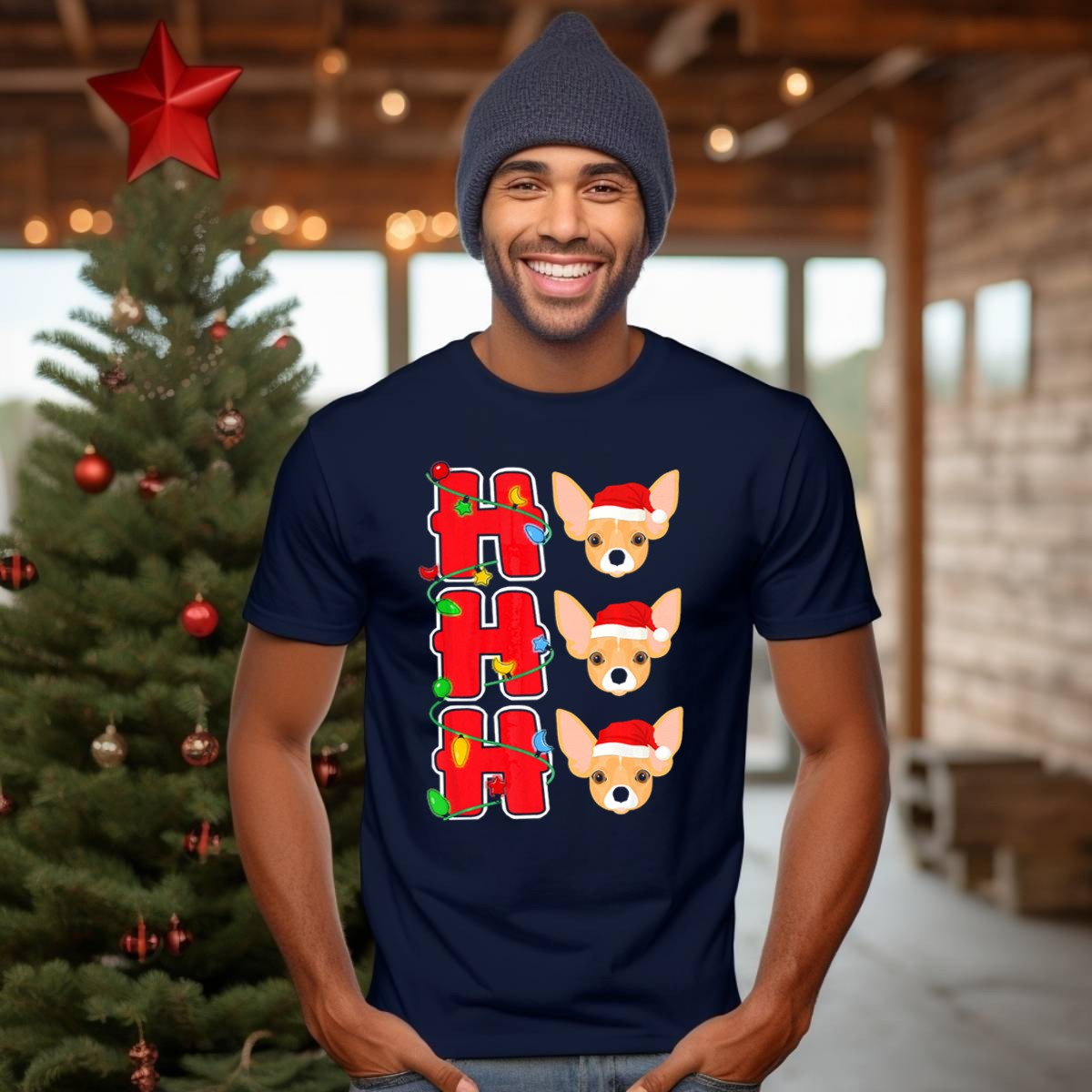 Get into the festive spirit with our Ho Ho Ho Santa Chihuahua T-Shirt, a delightful graphic tee perfect for dog lovers and holiday enthusiasts alike! This charming design features an adorable Chihuahua decked out in Santa gear, surrounded by twinkling Christmas lights, making it an ideal choice for casual wear, themed events, or just spreading cheer during the holiday season. Crafted for comfort and style, this shirt is sure to become a favorite in your all-season wardrobe.