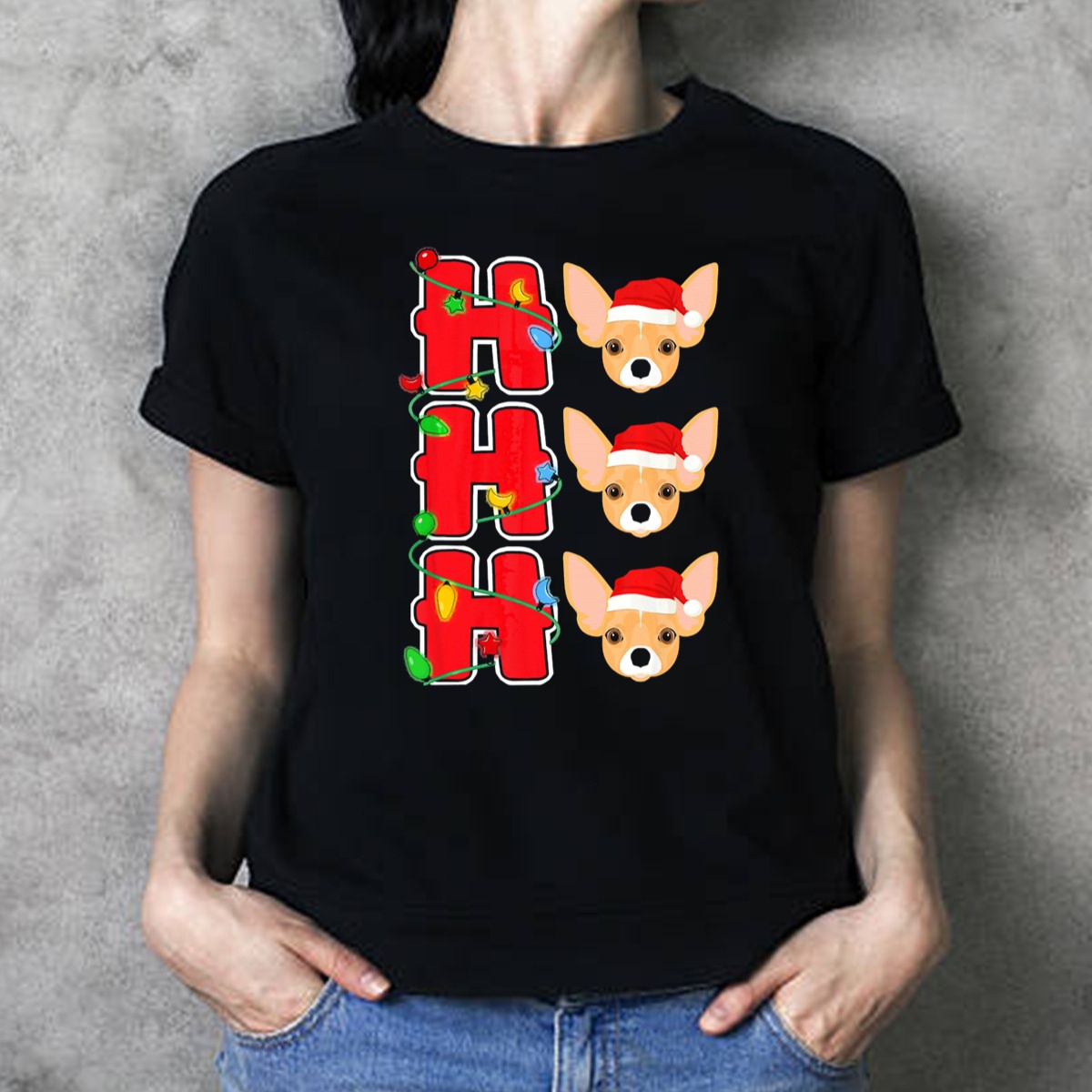 Ho Ho Ho Santa Chihuahua With Christmas Lights T Shirt