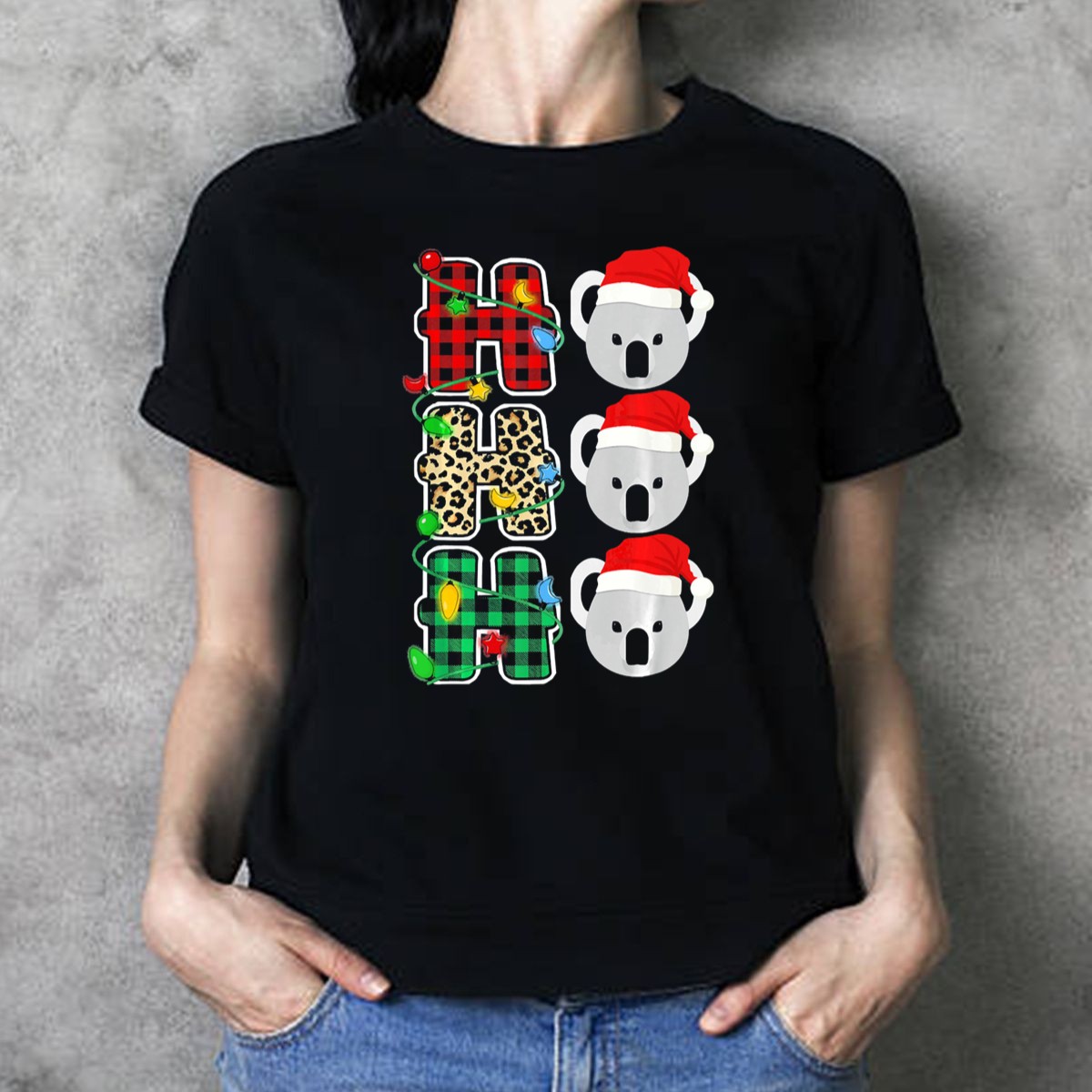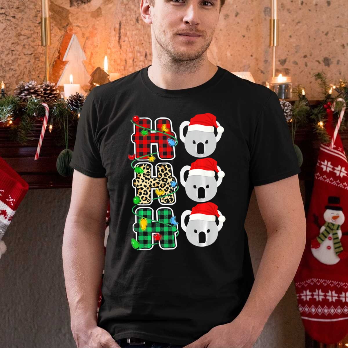 Ho Ho Ho Santa Hat Koala Christmas Lights Plaid Leopard T Shirt