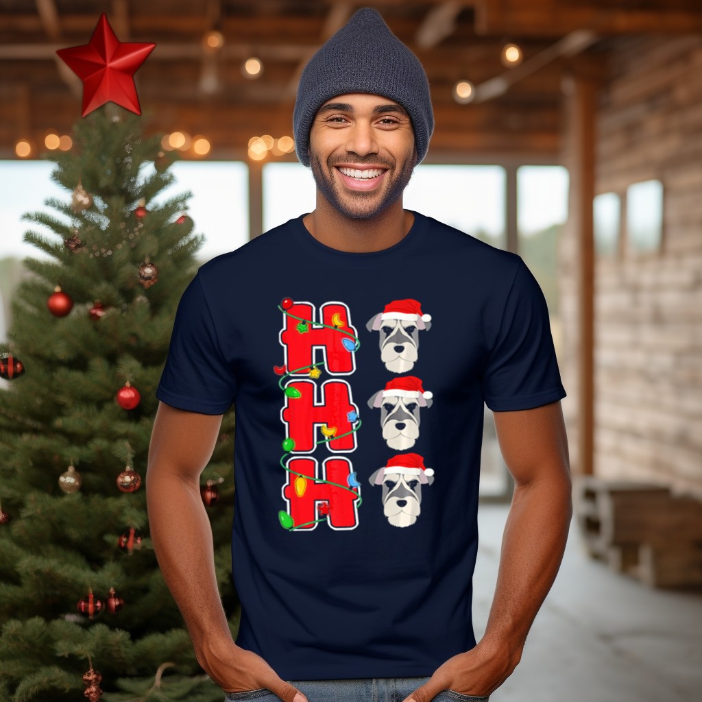 Celebrate the festive season with our charming Ho Ho Ho Santa Schnauzer Christmas Lights Trio T-Shirt, perfect for dog lovers and holiday enthusiasts alike! This delightful shirt features a whimsical design that showcases a playful schnauzer surrounded by cheerful Christmas lights, making it an ideal choice for casual wear, themed events, or simply spreading holiday cheer. Crafted for comfort and style, this fan-made design is printed in the USA, ensuring a unique addition to your winter wardrobe.