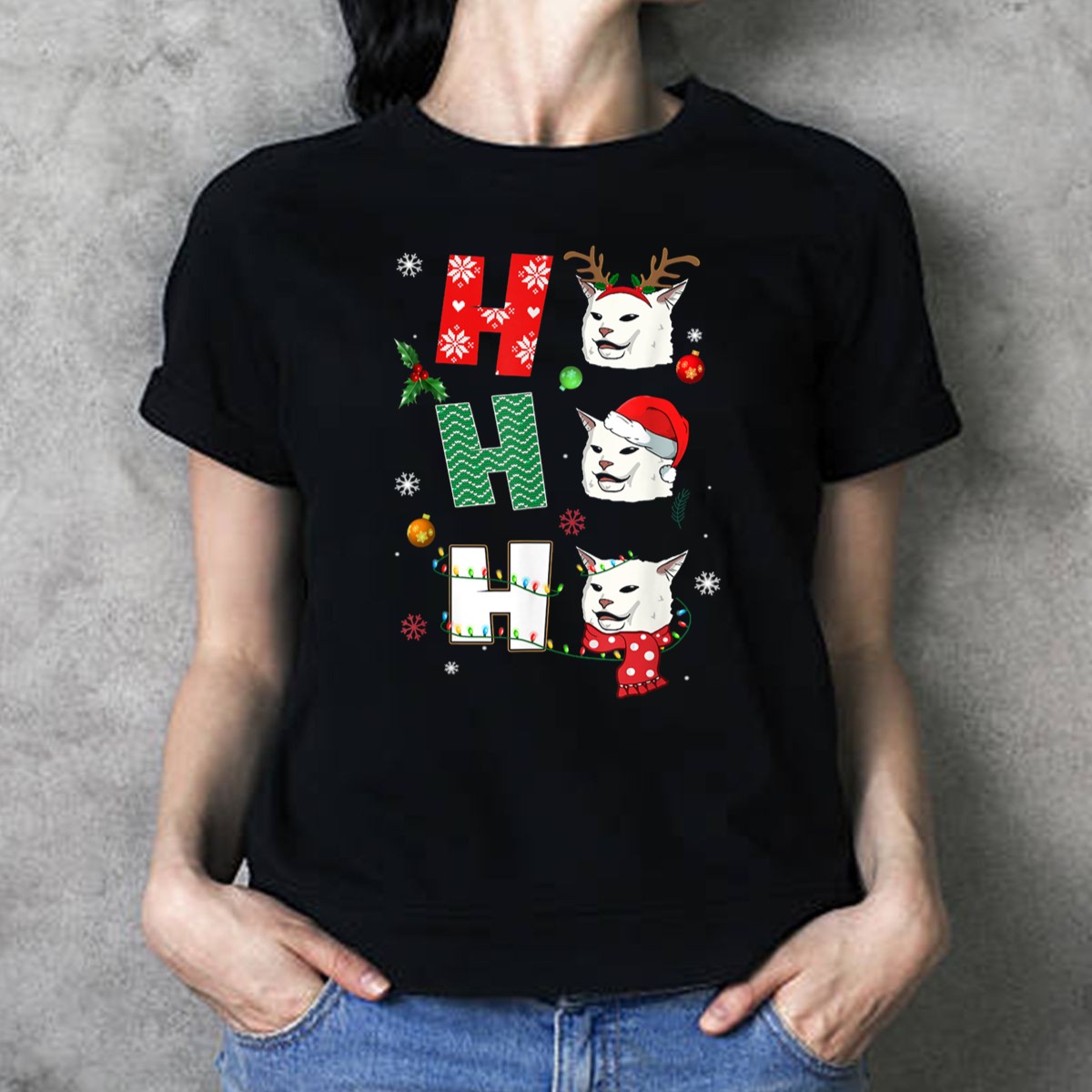 Get into the festive spirit with our Ho Ho Ho Smudge Cat Santa Hat Reindeer Antlers Christmas T-Shirt! Perfect for cat lovers and holiday enthusiasts alike, this fun and quirky design adds a playful twist to your seasonal wardrobe. Ideal for casual outings, themed events, or simply lounging at home, this shirt captures the joy and whimsy of the holiday season, making it an essential piece for all your Christmas celebrations.