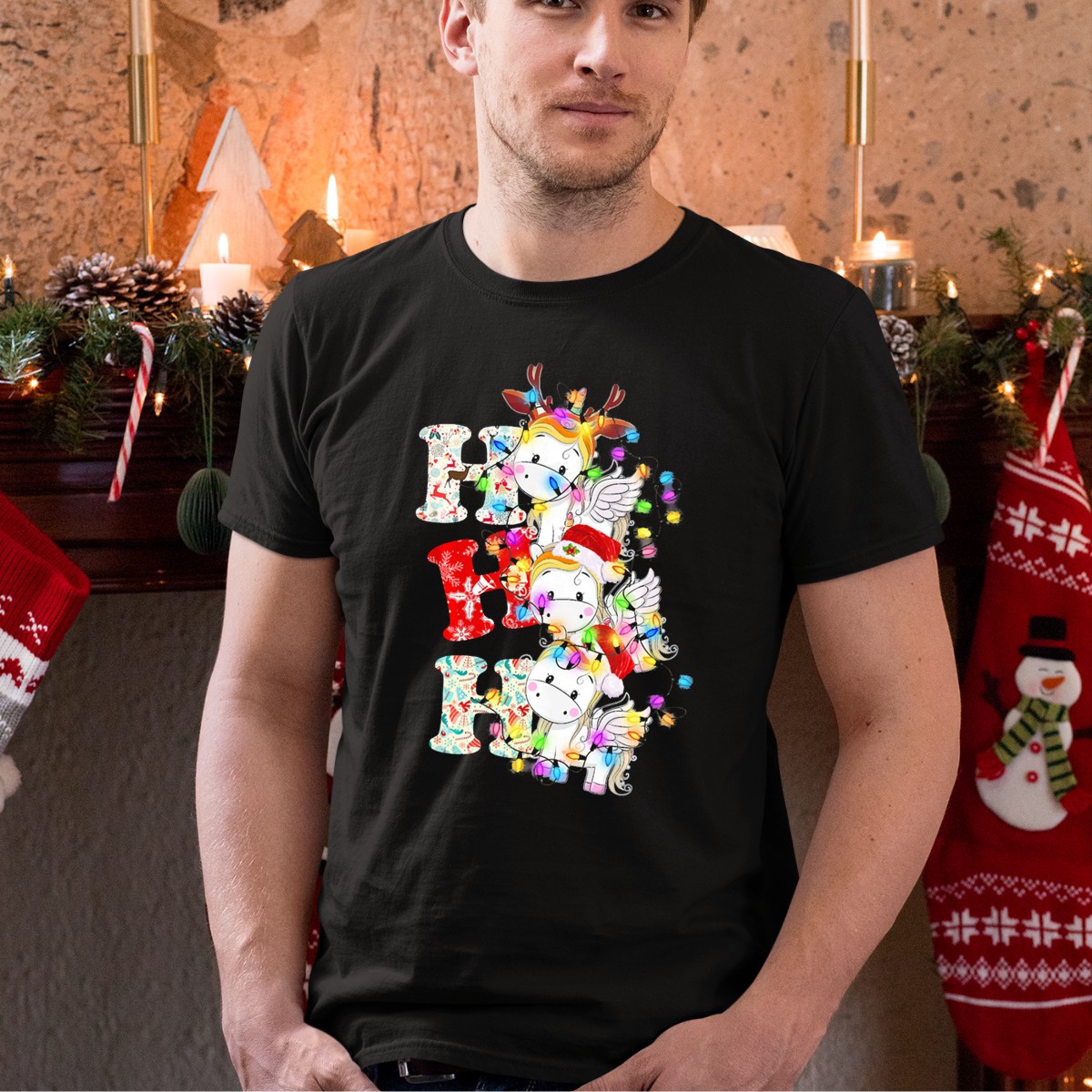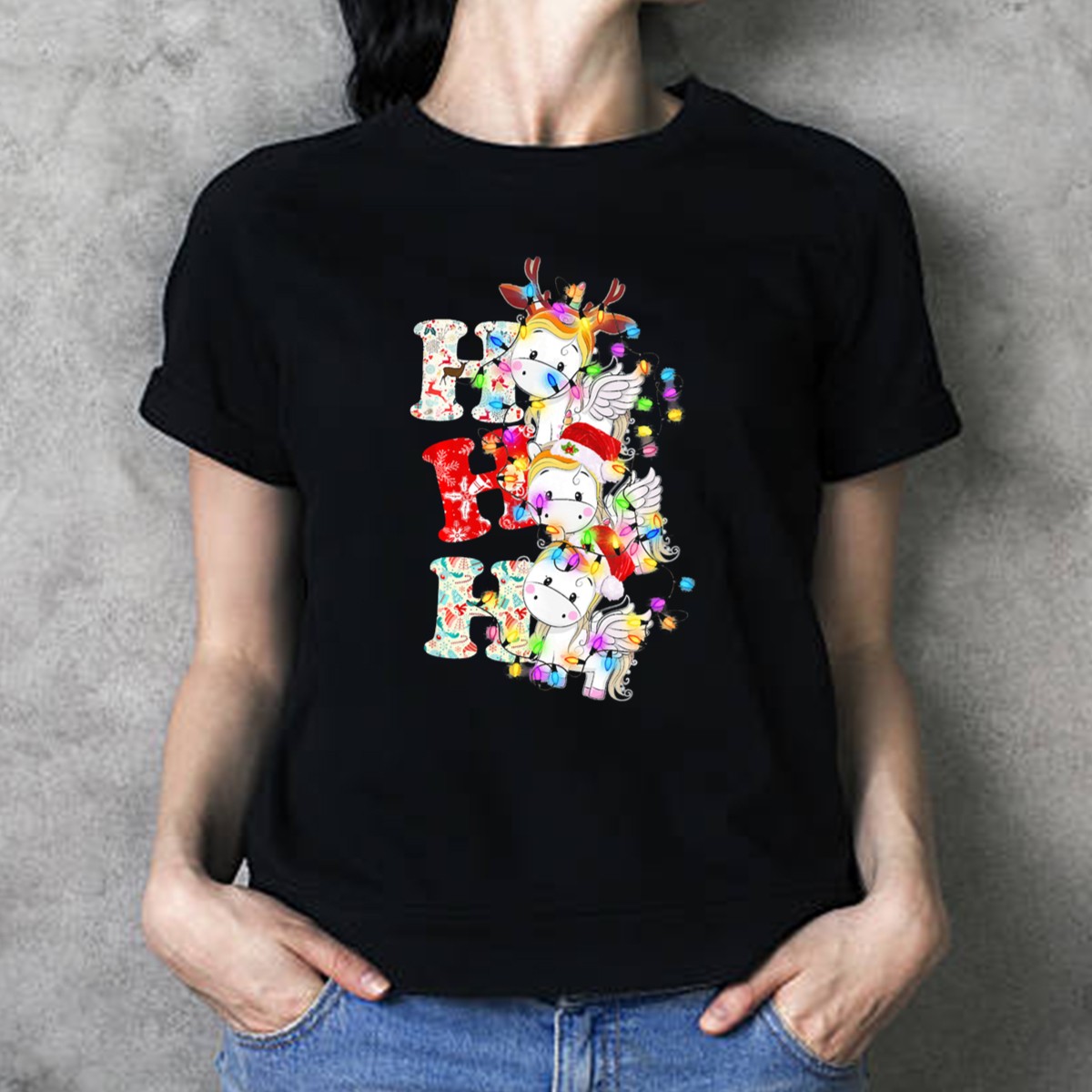 Celebrate the holiday spirit with our Ho Ho Ho Unicorn Lover Deer Santa Claus Christmas Lights T-Shirt! This whimsical design is perfect for unicorn enthusiasts and anyone looking to add a touch of magic to their festive wardrobe. Ideal for casual wear, themed events, or simply spreading cheer during the holiday season, this shirt is a delightful blend of fun and comfort. Made with care in the USA, it’s sure to be a hit at any gathering!