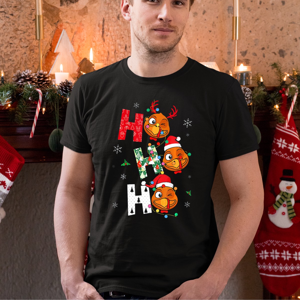 Get ready to spread some festive cheer with our Ho Ho Ho Winking Santa Turkey Christmas Snowflakes T-Shirt! Perfect for holiday gatherings, themed events, or just casual daily wear, this shirt combines a playful design that captures the spirit of the season with a comfortable fit that everyone will love. Made for those who enjoy celebrating the holidays in style, this fan-made graphic tee is printed in the USA, ensuring a unique touch to your wardrobe.