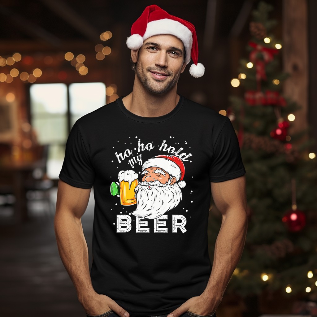 Get ready to celebrate the holiday season with our Ho Ho Hold My Beer Santa Christmas Drinking T-Shirt! Perfect for festive gatherings, themed events, or just spreading cheer during your daily wear, this fun and playful design is sure to bring a smile to everyone around you. Crafted for comfort and style, this shirt is ideal for anyone looking to add a humorous touch to their Christmas wardrobe while enjoying the festivities.