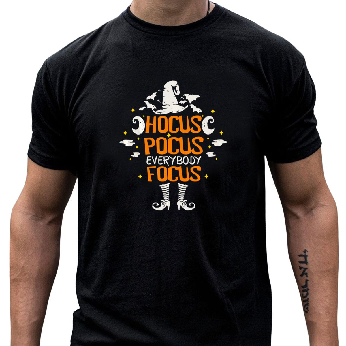 Get ready to cast a spell this Halloween with our Hocus Pocus Everybody Focus T-Shirt! Designed for fans of the classic movie, this playful tee features a whimsical witch hat and boots graphic, making it the perfect choice for themed events, casual outings, or just lounging around. Made with love and printed in the USA, this shirt is not only a great way to show your Halloween spirit but also a comfy addition to your all-season wardrobe.