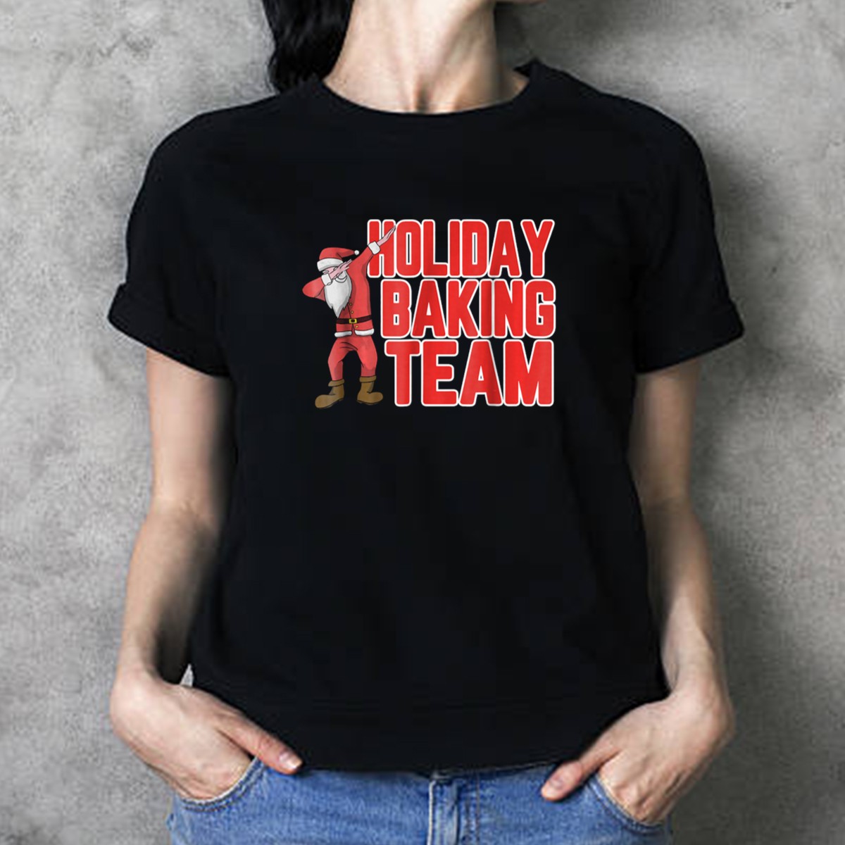 Celebrate the festive spirit with our Holiday Baking Team Santa Dabbing Christmas T-Shirt! Perfect for those who love to combine holiday cheer with a dash of humor, this fan-made design features a playful Santa in a dabbing pose, making it an ideal choice for casual gatherings, themed events, or simply spreading joy during the holiday season. Crafted for comfort and style, this shirt will surely become a favorite in your seasonal wardrobe.