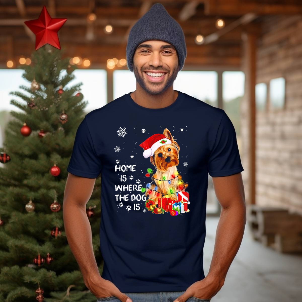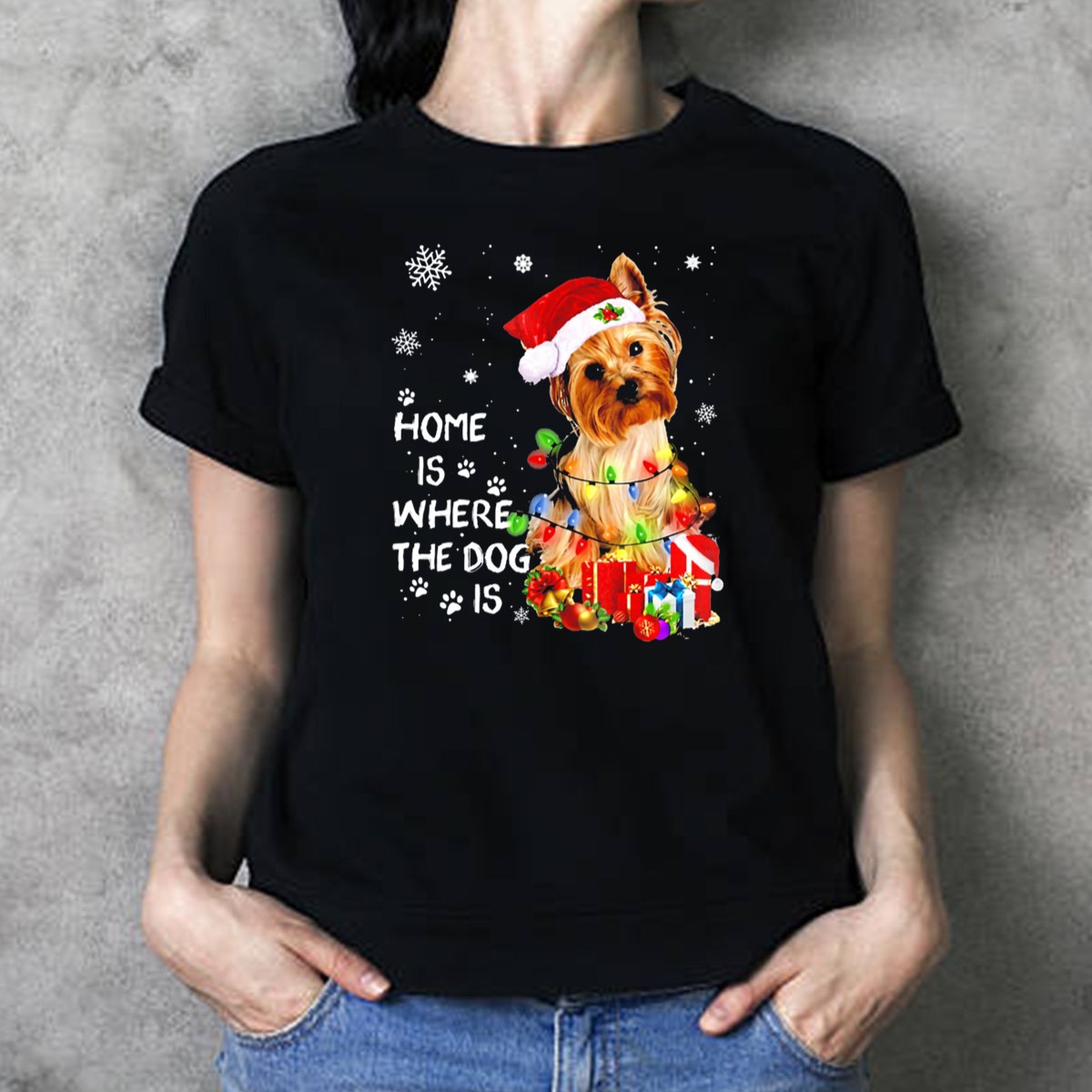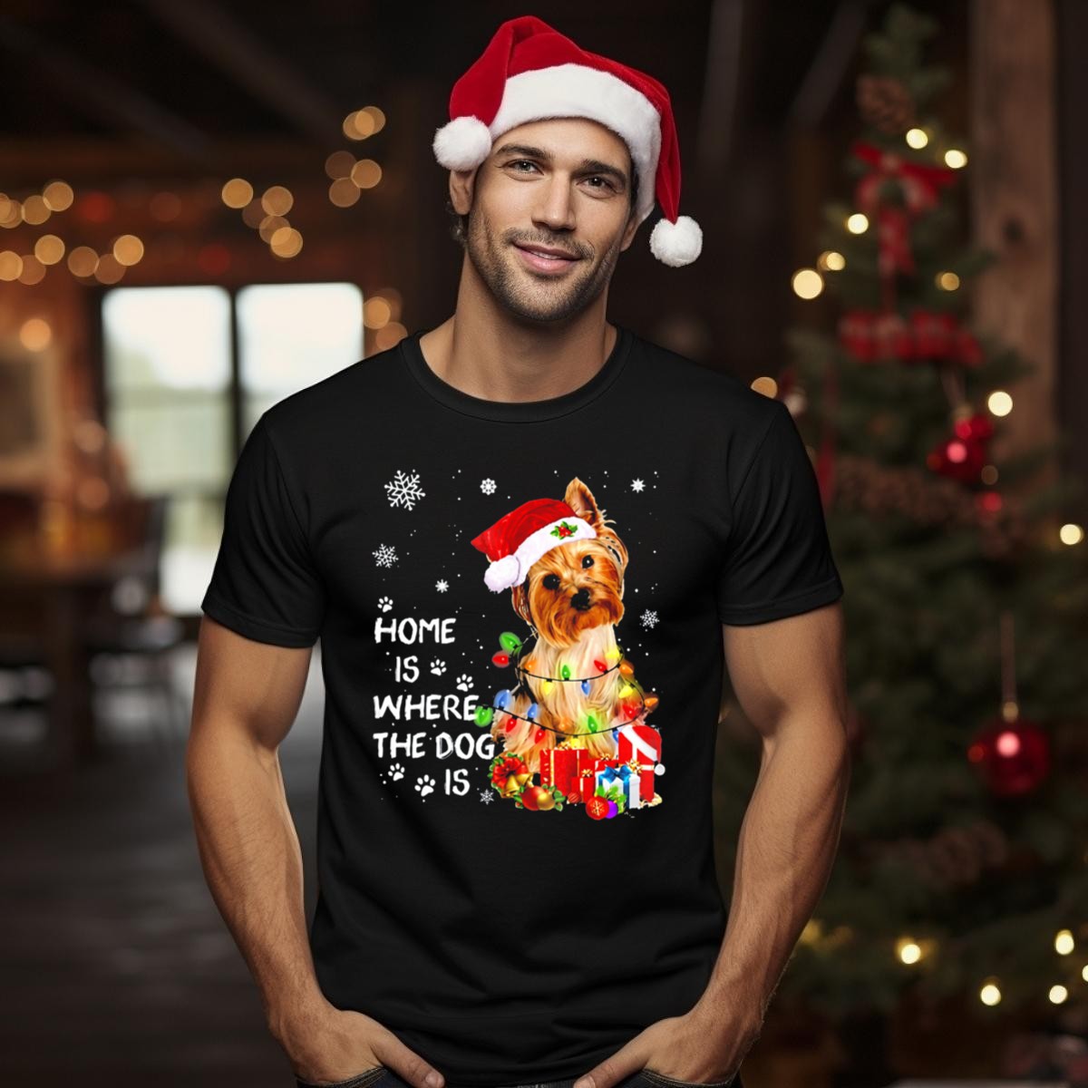 Celebrate the joy of the holiday season with our “Home Is Where The Dog Is” Christmas Lights Yorkie T-Shirt! Perfect for dog lovers and Yorkie enthusiasts, this fun and festive tee is ideal for casual wear, themed events, or simply lounging at home during the holidays. Made with a unique fan-made design printed in the USA, it showcases your love for your furry friends while keeping you comfortable and stylish all season long.