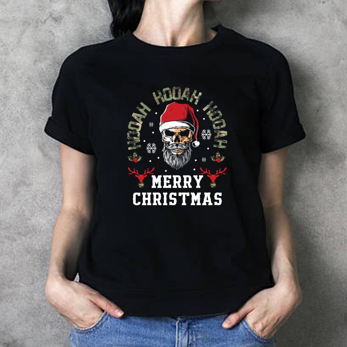 Be the first to review “Hooah Hooah Hooah Merry Christmas Skull Santa Hat Reindeer T Shirt”