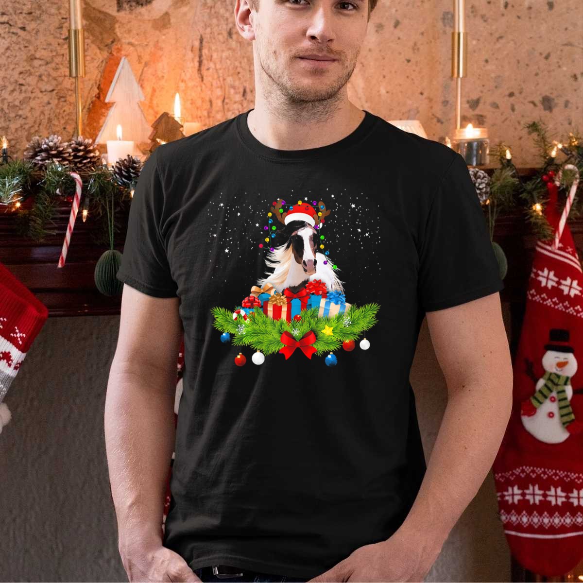 Be the first to review “Horse Christmas Reindeer Light Funny Hor Festive Holiday Gifts Wreath Santa Hat Lights T-Shirt”