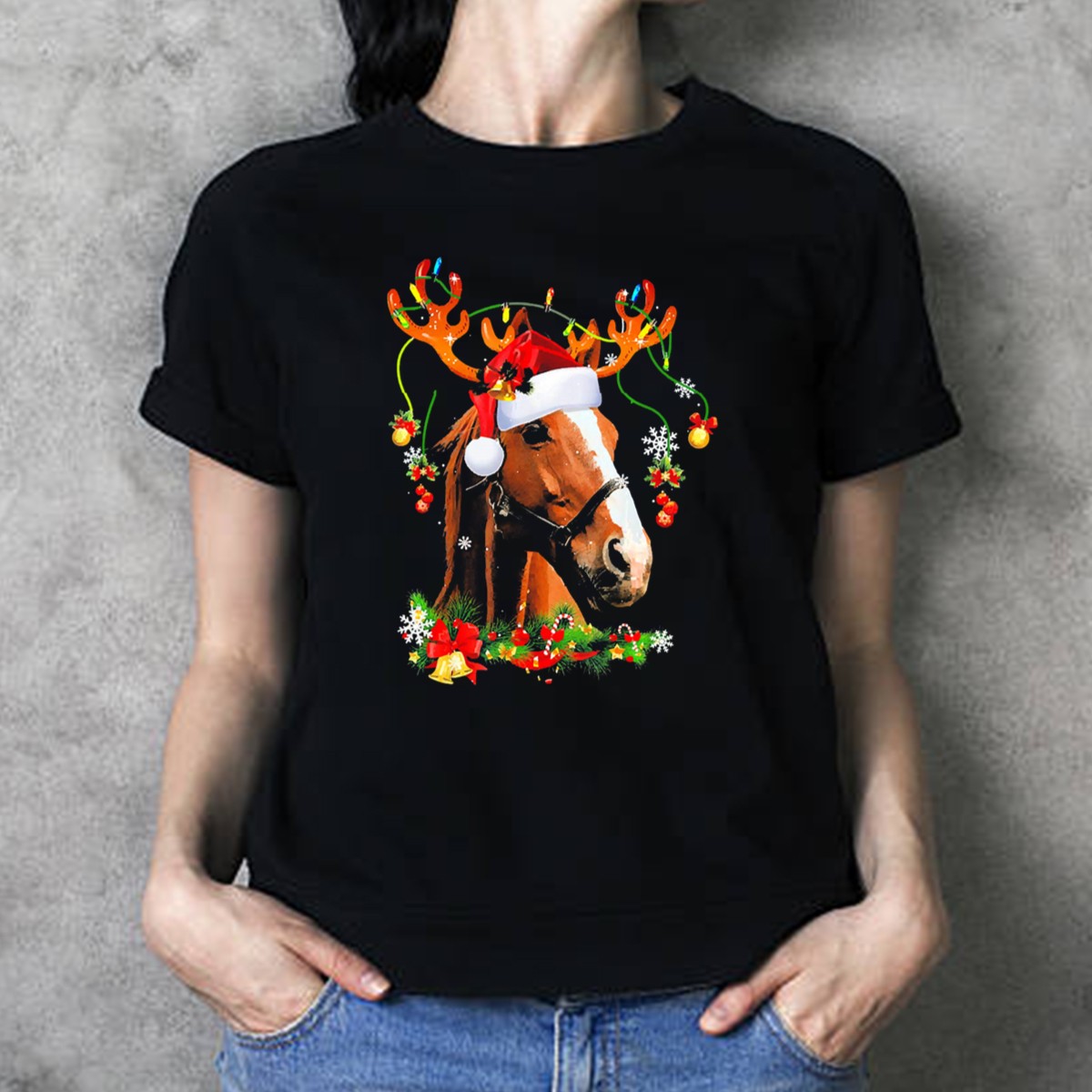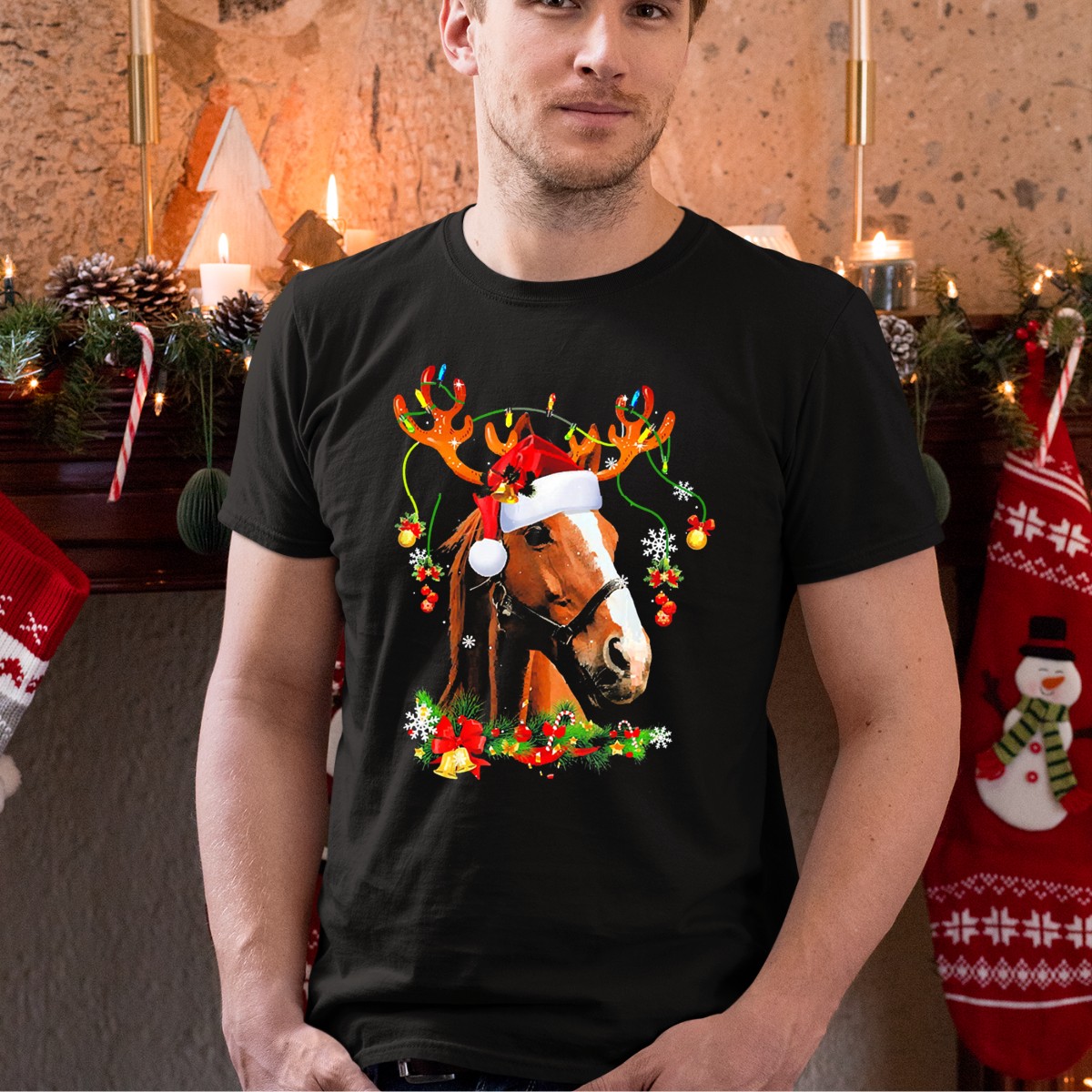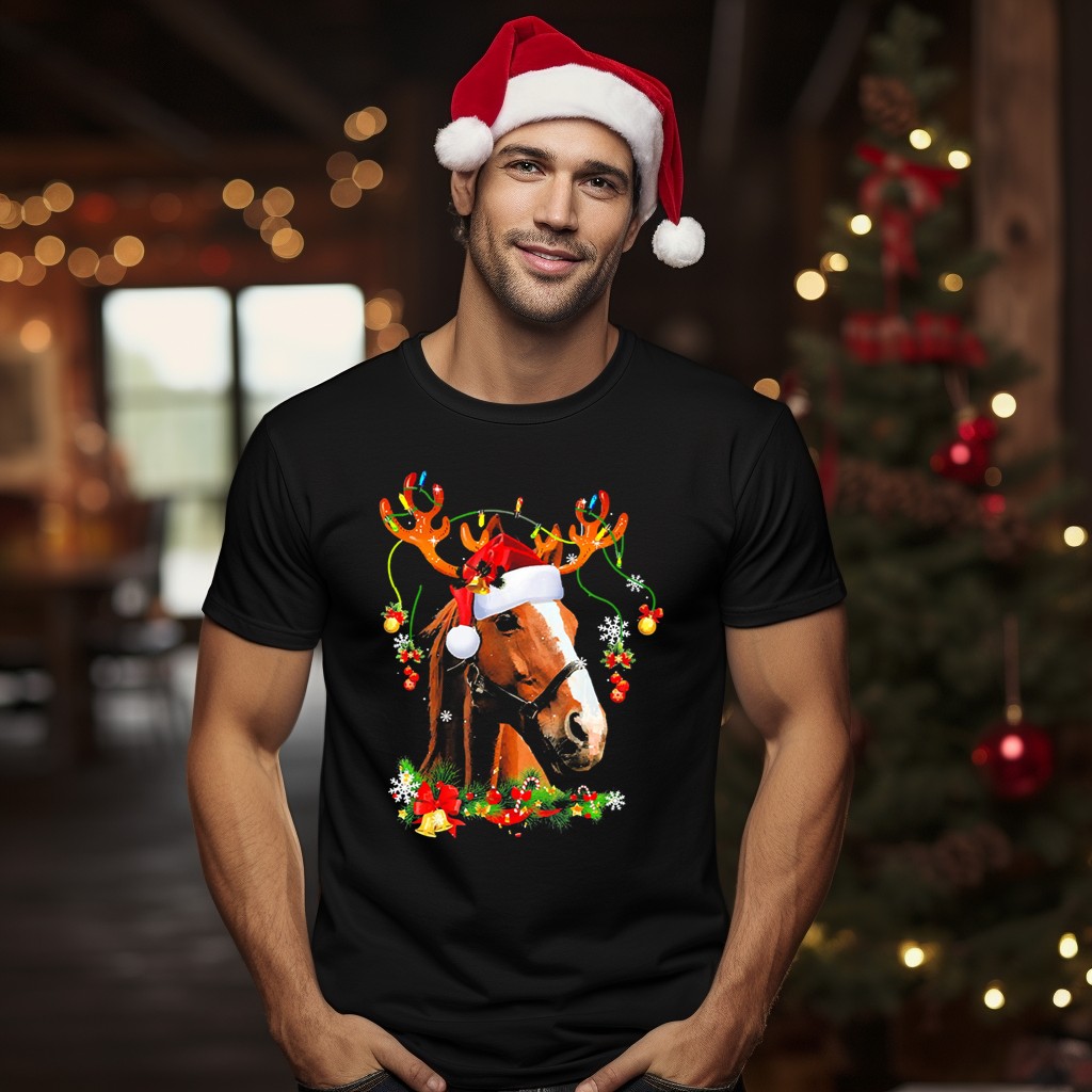 Be the first to review “Horse With Santa Hat And Reindeer Antlers Christmas Humor T-Shirt”