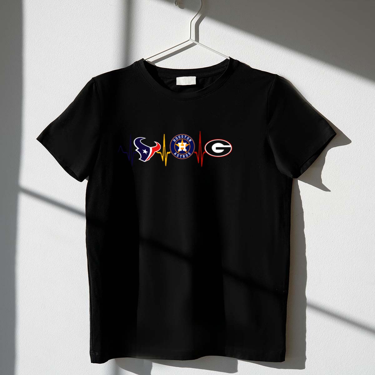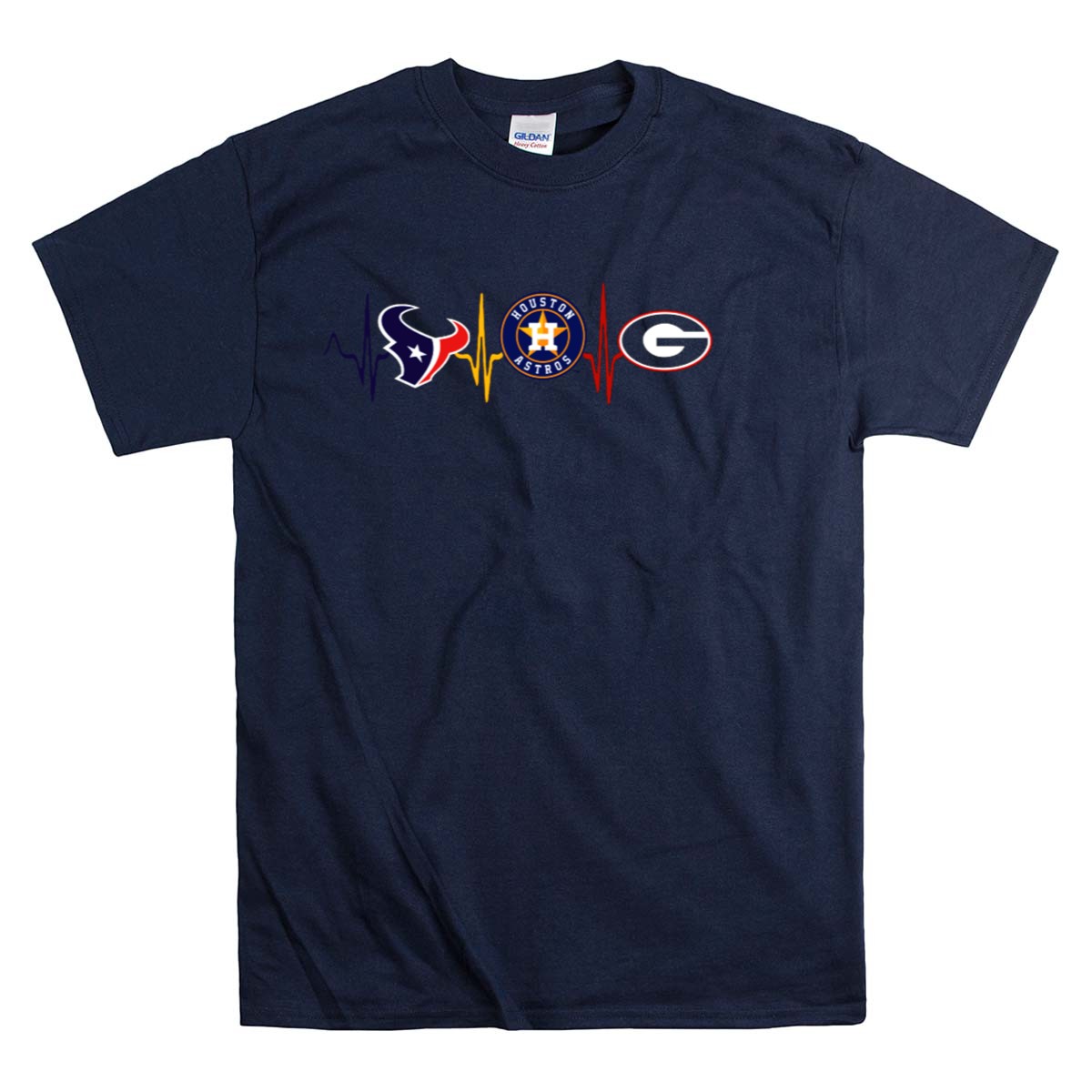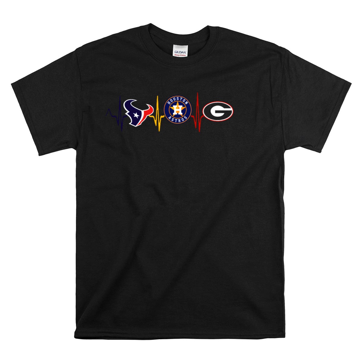 Show off your team spirit with our Houston Texans Astros Georgia Bulldogs Heartbeat T-Shirt! This fan-made design is perfect for die-hard supporters of the Texans and Bulldogs, making it a must-have for game days, casual outings, or themed events. Crafted for comfort and style, this shirt is ideal for any season, allowing you to flaunt your loyalty wherever you go.