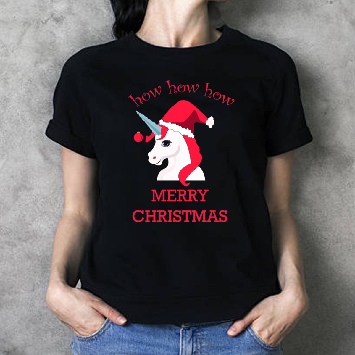 Be the first to review “How How How Unicorn Merry Christmas Santa Hat T Shirt”