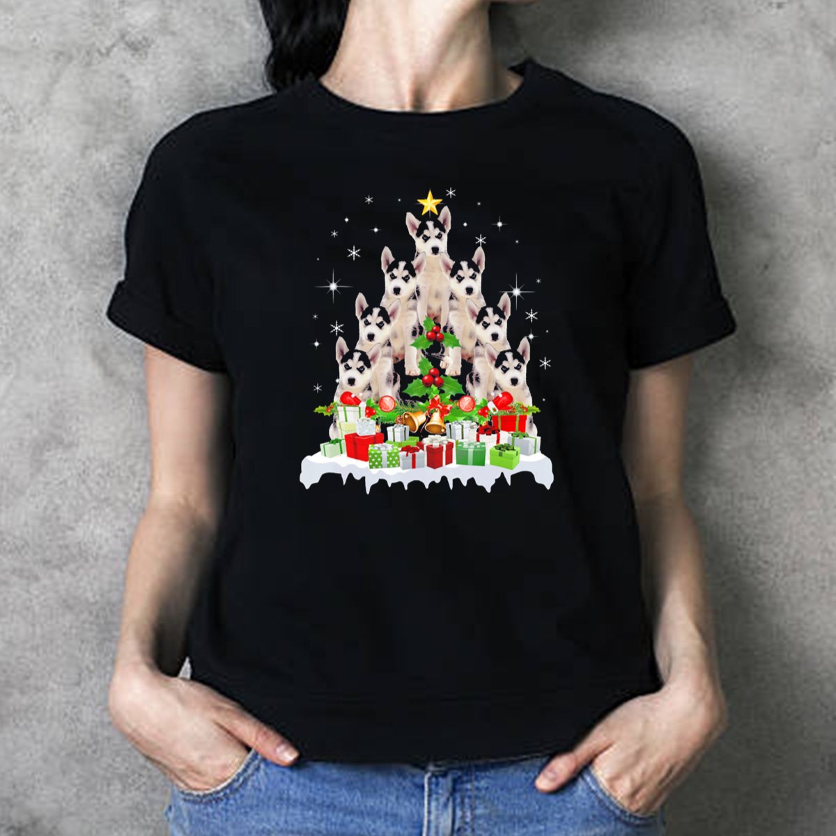 Celebrate the festive season with our charming Husky Dog Christmas Tree T-Shirt, perfect for dog lovers and holiday enthusiasts alike. This delightful design showcases an adorable husky surrounded by a beautifully decorated Christmas tree, gifts, and twinkling stars. Ideal for casual wear, themed events, or daily outings during the holiday season, this shirt is a must-have for anyone looking to spread some cheer and showcase their love for these magnificent dogs. Made with care in the USA, this fan-made design is sure to be a conversation starter!
