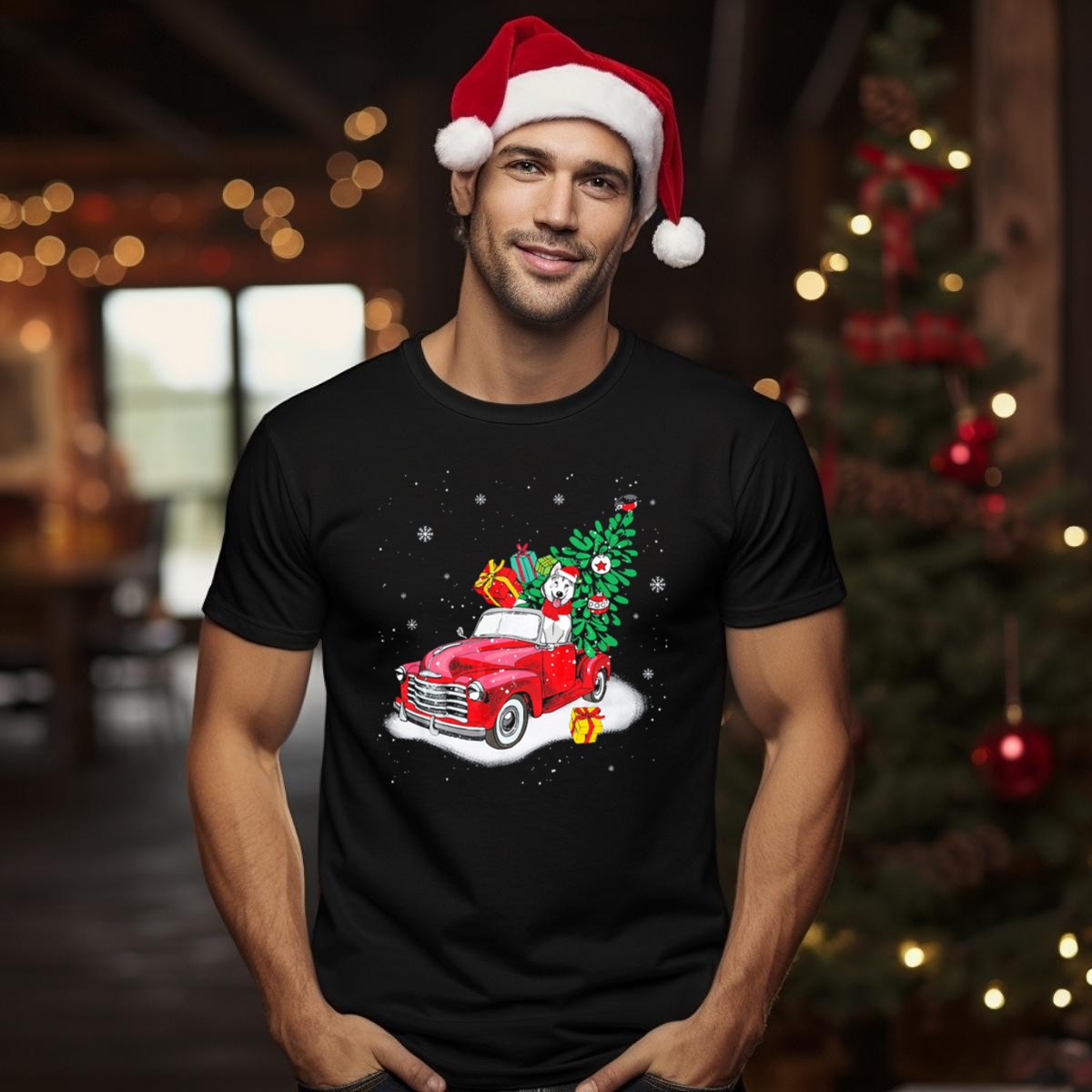 Celebrate the holiday spirit with our Husky Santa with Presents in Snowy Red Truck Carrying Christmas Tree T-Shirt! This delightful graphic tee is perfect for dog lovers and festive enthusiasts alike, making it an ideal choice for casual wear, themed events, or simply spreading cheer during the holiday season. Made with love and printed in the USA, this shirt captures the joy of Christmas in a unique and stylish way.