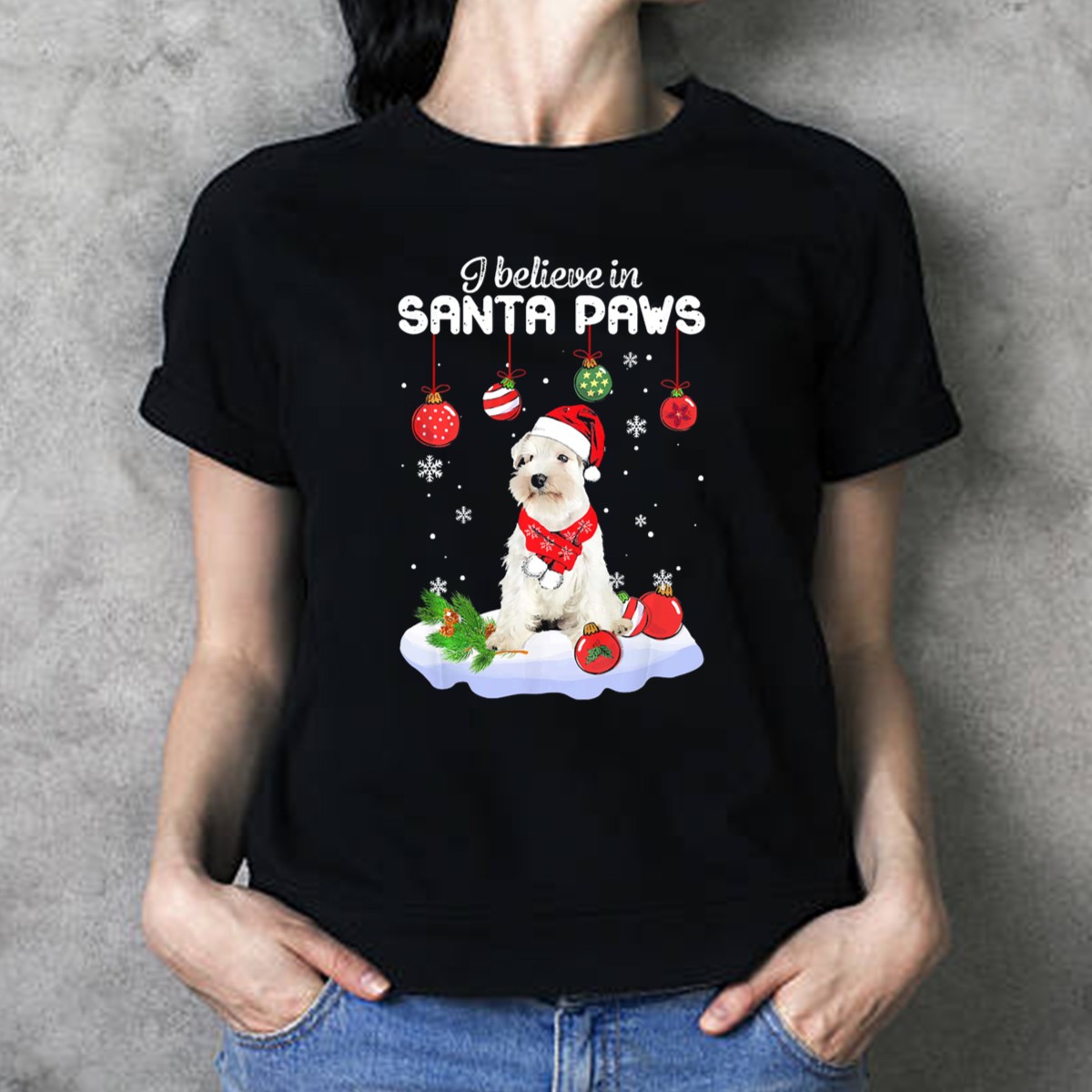 Be the first to review “I Believe In Santa Paws Miniature Schnauzer Christmas Decor With Snowflakes And T-Shirt”