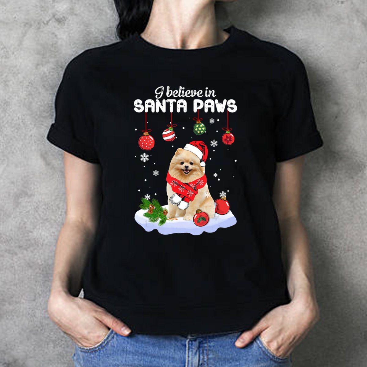 Celebrate the festive spirit with our “I Believe In Santa Paws” Pomeranian T-shirt, perfect for dog lovers and holiday enthusiasts alike! This charming design features adorable Pomeranian ornaments and snowflakes, making it an ideal choice for casual outings, themed events, or just spreading cheer during the holiday season. Made for those who cherish their furry friends, this shirt adds a unique touch to your winter wardrobe while keeping comfort at the forefront.
