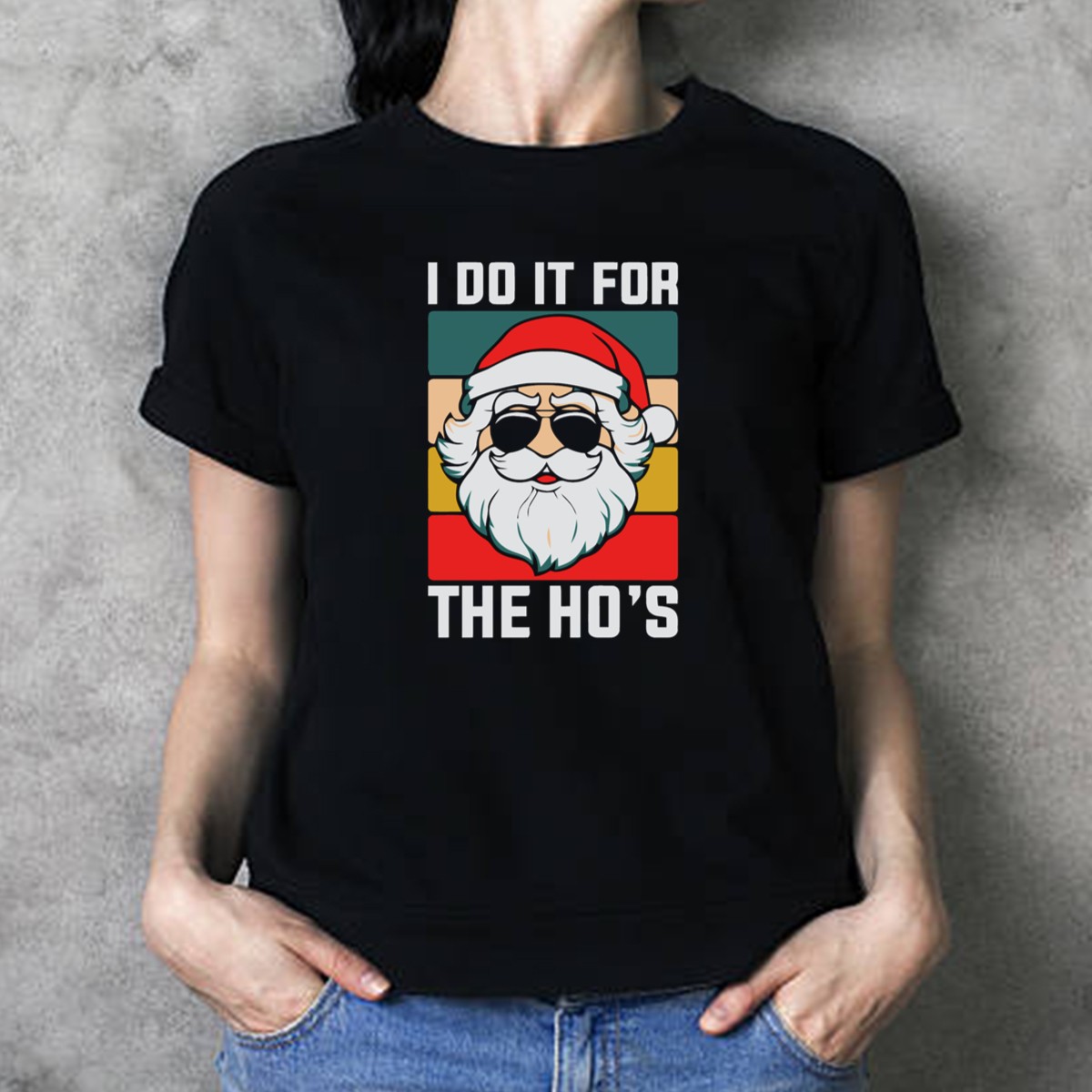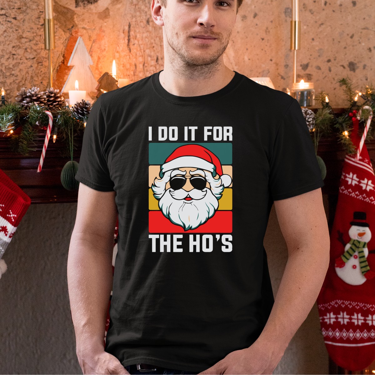 Get ready to spread some holiday cheer with our “I Do It For The Ho’s Christmas Santa Retro Sunglasses T-Shirt.” This fun and festive tee is perfect for anyone looking to add a playful touch to their holiday wardrobe. Ideal for casual wear, themed events, or just spreading smiles during the Christmas season, this shirt features a unique fan-made design printed right here in the USA. Celebrate the spirit of the holidays in style!