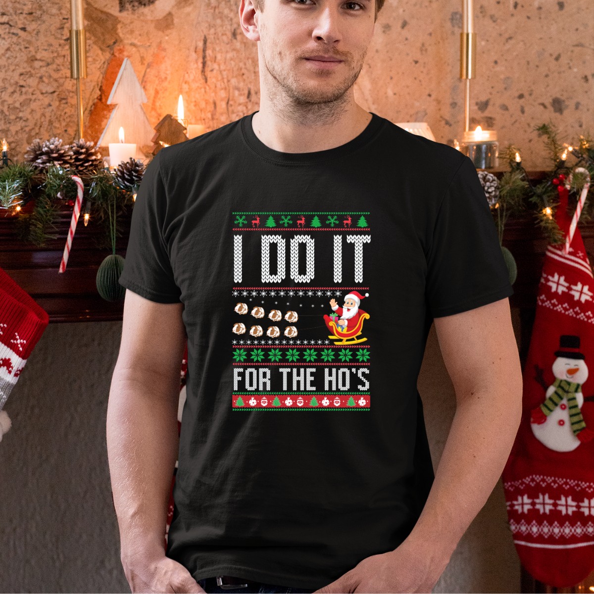 Get into the holiday spirit with our “I Do It For The Ho’s” Santa Sleigh Christmas Ugly T-Shirt! This fun and festive shirt is perfect for anyone looking to spread some cheer at themed events, casual gatherings, or daily wear throughout the season. Made for those who love to celebrate with a sense of humor, this fan-made design is printed right here in the USA, making it a unique addition to your holiday wardrobe.