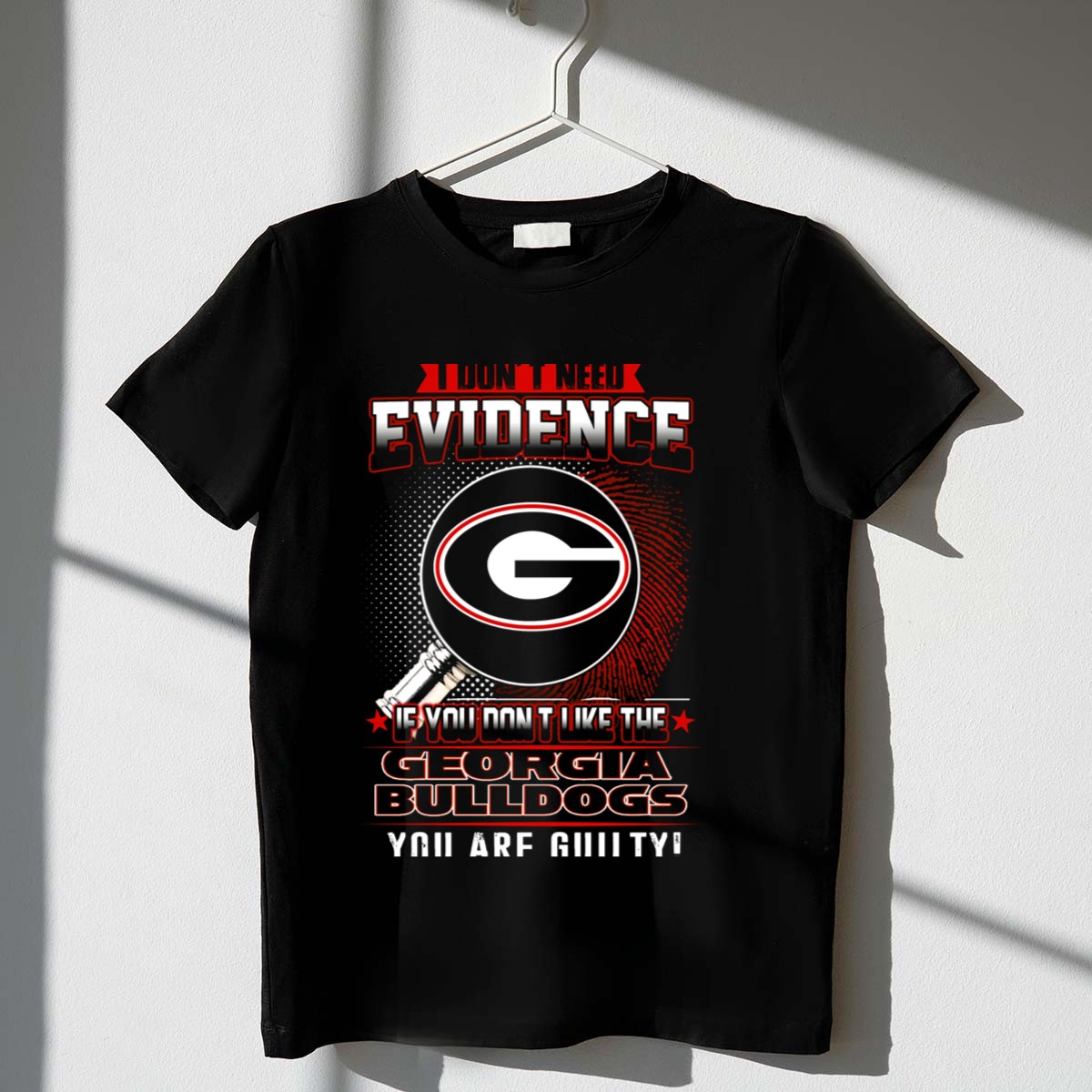 Show your unwavering support for the Georgia Bulldogs with our “I Don’t Need Evidence If You Don’t Like the Georgia Bulldogs You Are Guilty” T-shirt! Perfect for die-hard fans, this shirt is ideal for casual outings, themed events, or just showing off your team spirit in everyday life. Crafted with a fan-made design, this shirt not only makes a bold statement but also celebrates your love for the Bulldogs in style. Made in the USA, it’s a unique addition to any fan’s wardrobe.