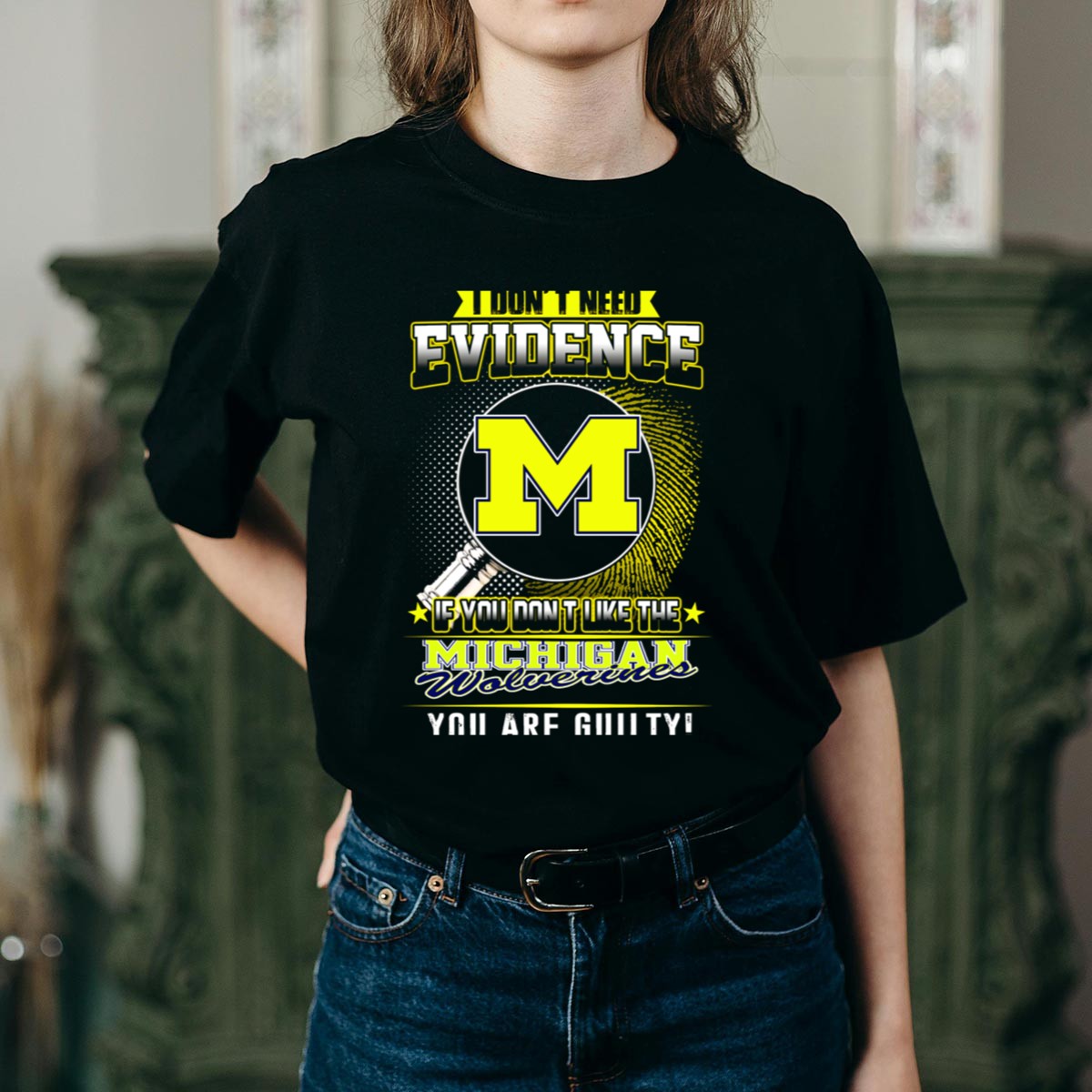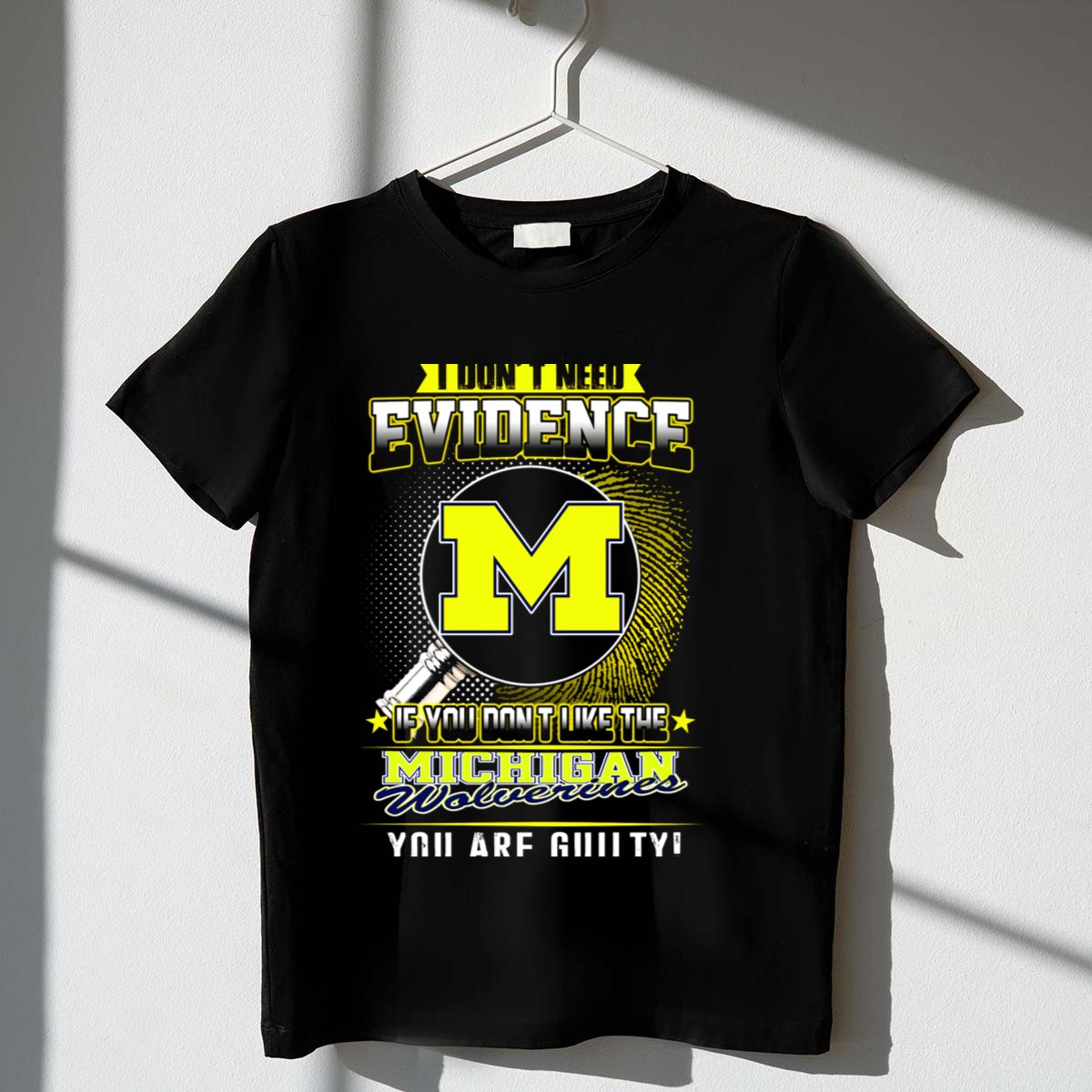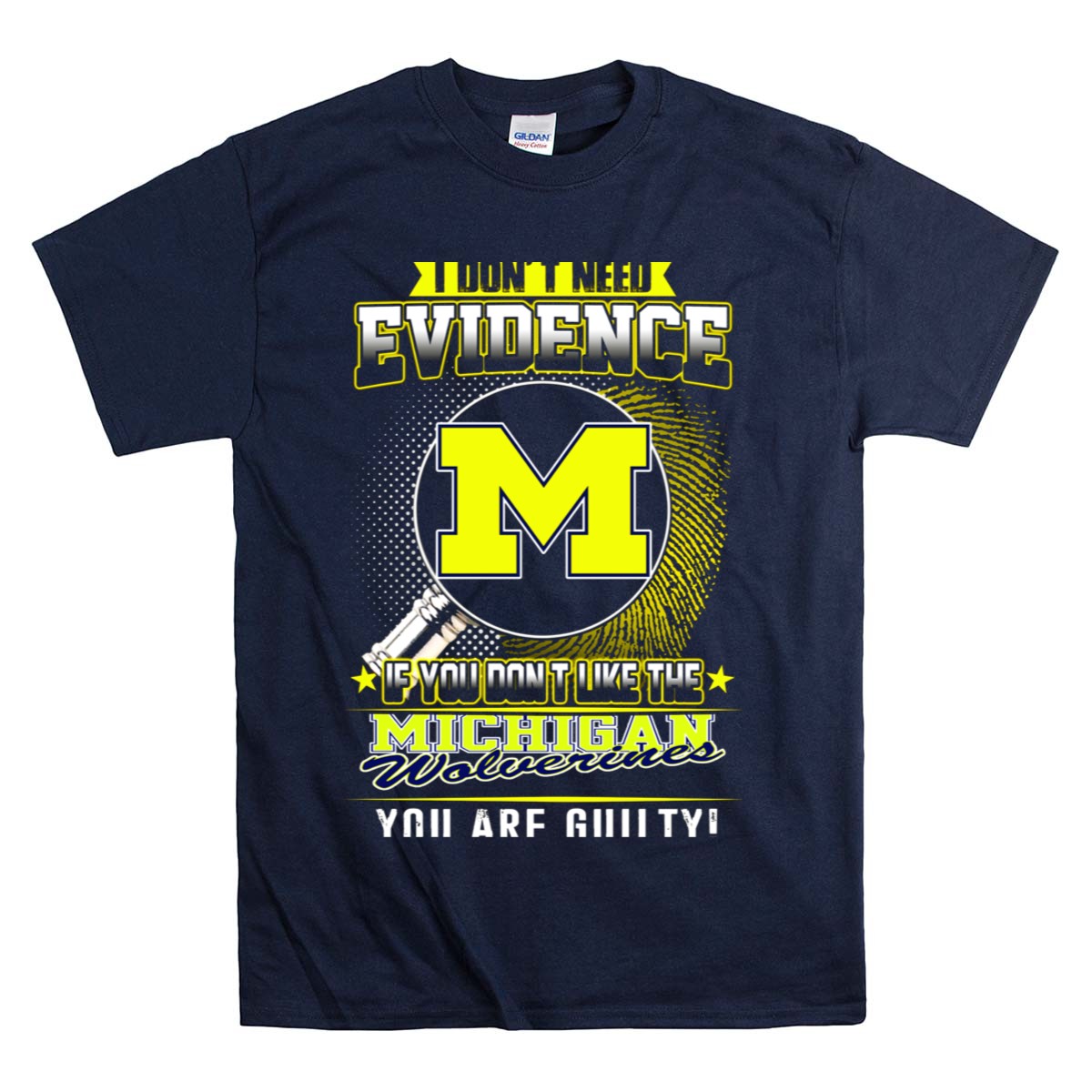 Show your unwavering support for the Michigan Wolverines with our “I Don’t Need Evidence, You Are Guilty” T-shirt! Perfect for die-hard fans, this shirt combines a bold, fan-made design with a comfortable fit, making it ideal for casual outings, themed events, or just showing off your team spirit in your daily wear. Crafted with care in the USA, this T-shirt is a must-have for anyone who wants to make a statement while cheering on their favorite team.