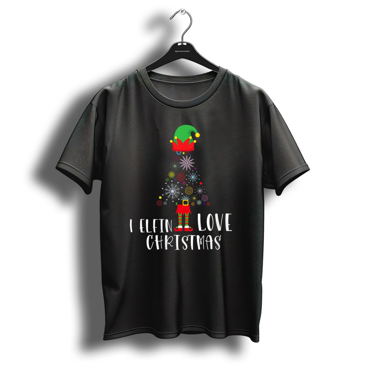 Celebrate the magic of the holiday season with our I Elfin Love Christmas Elf Hat Snowflakes T-Shirt! Perfect for elves of all ages, this whimsical design captures the joy and spirit of Christmas. Ideal for casual wear, themed events, or simply spreading cheer during daily activities, this shirt is a must-have for anyone looking to add a touch of fun to their festive wardrobe. Made in the USA, this fan-made design is sure to bring smiles and compliments wherever you go!