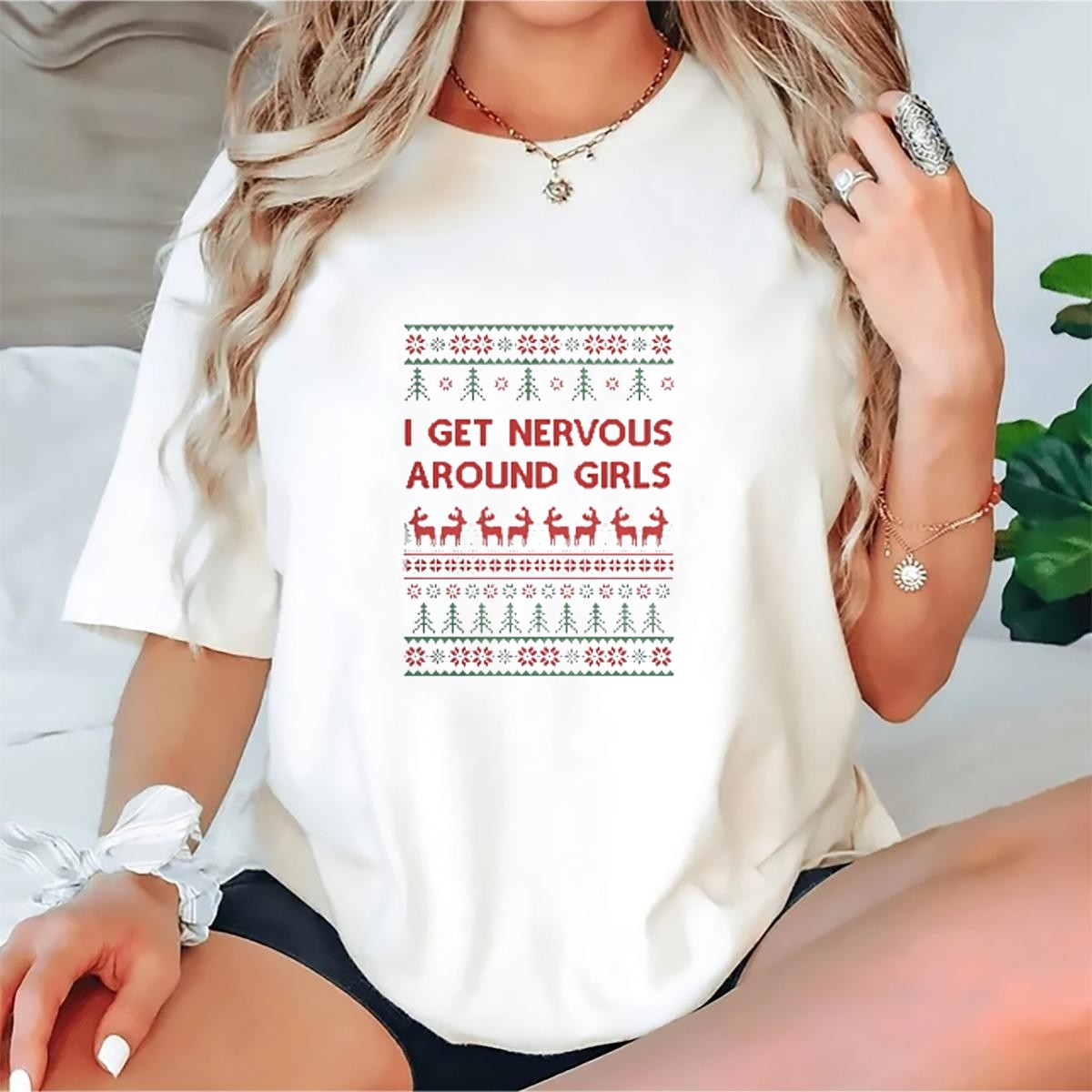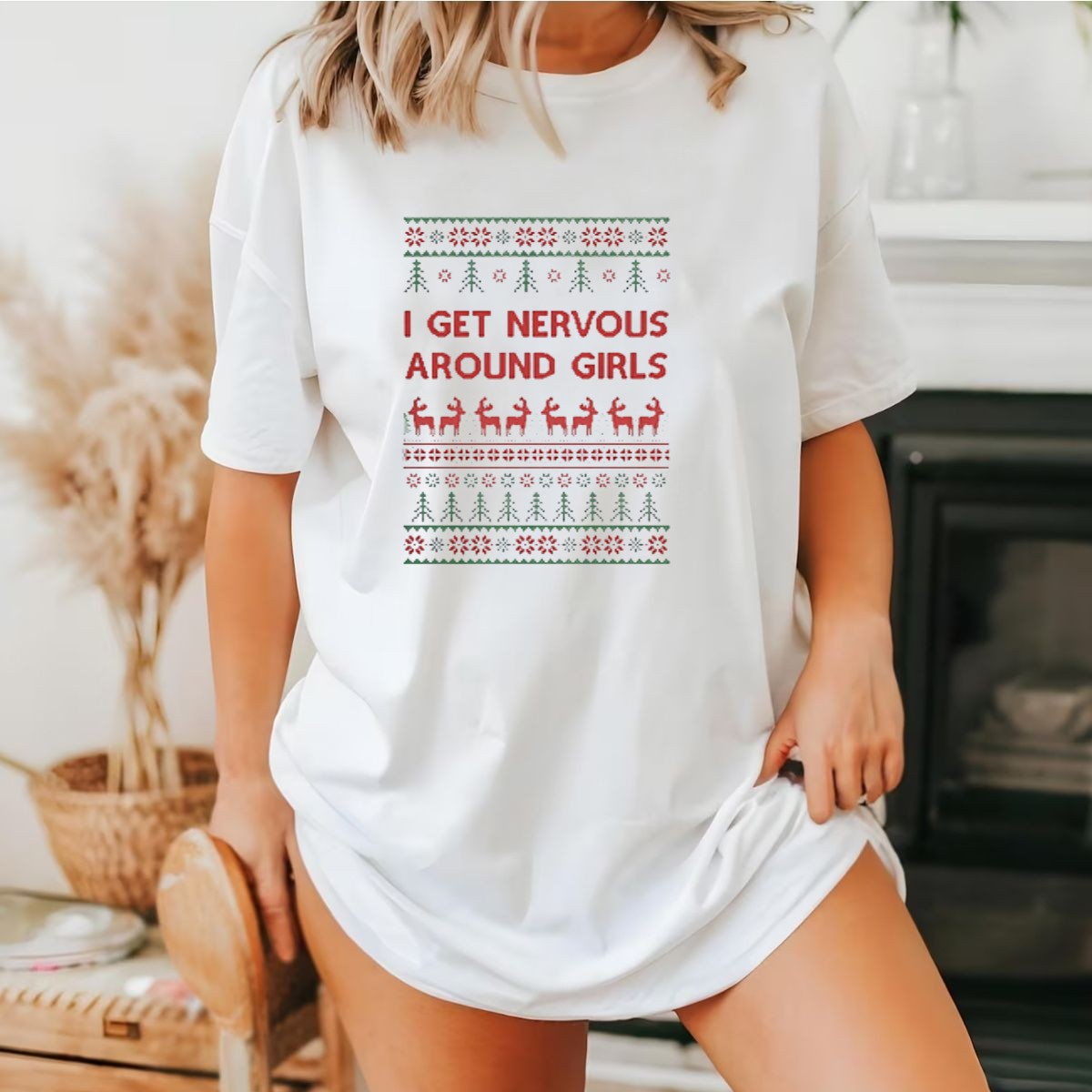 Embrace the holiday spirit with a twist of humor in our “I Get Nervous Around Girls” Christmas Reindeer Ugly T-Shirt. Perfect for those who enjoy a laugh during festive gatherings, this tee is designed for everyone who loves to celebrate the season with a touch of quirky charm. Ideal for casual wear, themed events, or just lounging around during the holidays, this fan-made design is printed in the USA, making it a unique addition to your wardrobe.