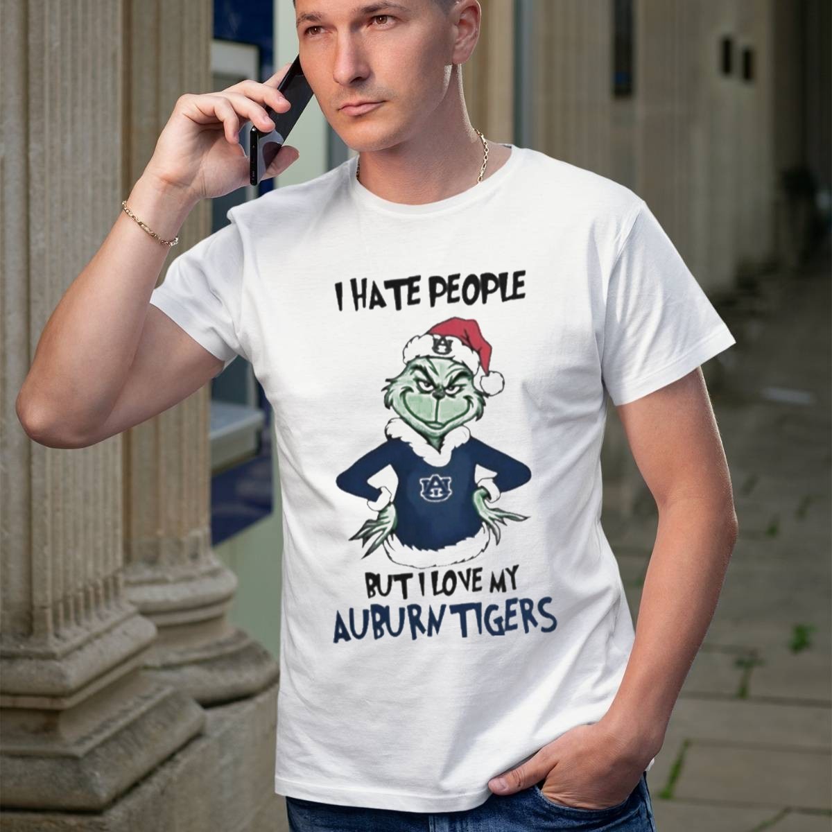 Embrace the holiday spirit with a twist in our “I Hate People But I Love My Auburn Tigers Grinch Christmas T-Shirt.” Perfect for fans who love to showcase their team pride while adding a dash of humor to their wardrobe, this shirt is designed for casual outings, themed events, or just lounging around during the festive season. Made to be soft and durable, this unique fan-made design will keep you comfortable while you cheer on your team, all the while sharing a laugh with fellow fans!