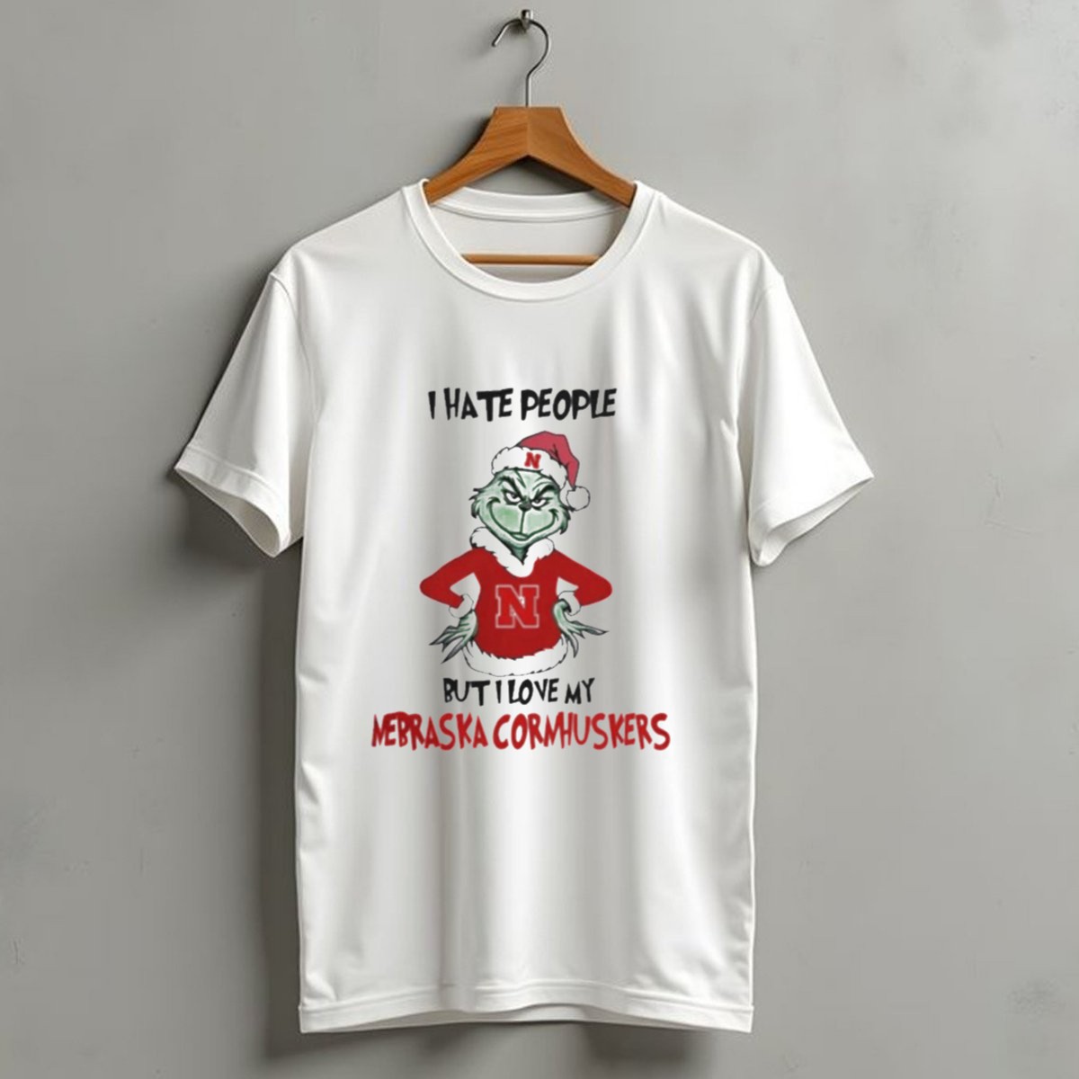 Show off your love for the Nebraska Cornhuskers this holiday season with our “I Hate People But I Love My Nebraska Cornhuskers Grinch Christmas” T-shirt! Perfect for fans who enjoy a humorous twist on their holiday spirit, this shirt is ideal for casual gatherings, themed events, or simply lounging around during the festive season. Made in the USA, this fan-made design is sure to turn heads and spark conversations at any occasion!