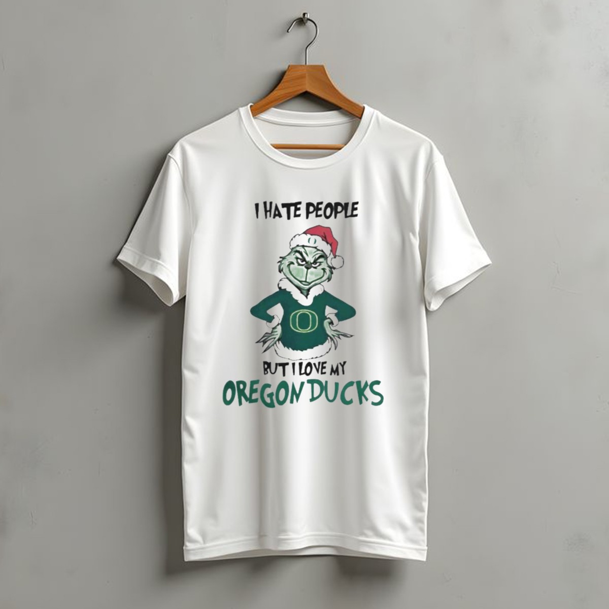I Hate People But I Love My Oregon Ducks Grinch In Santa Hat Merry Christmas T-Shirt