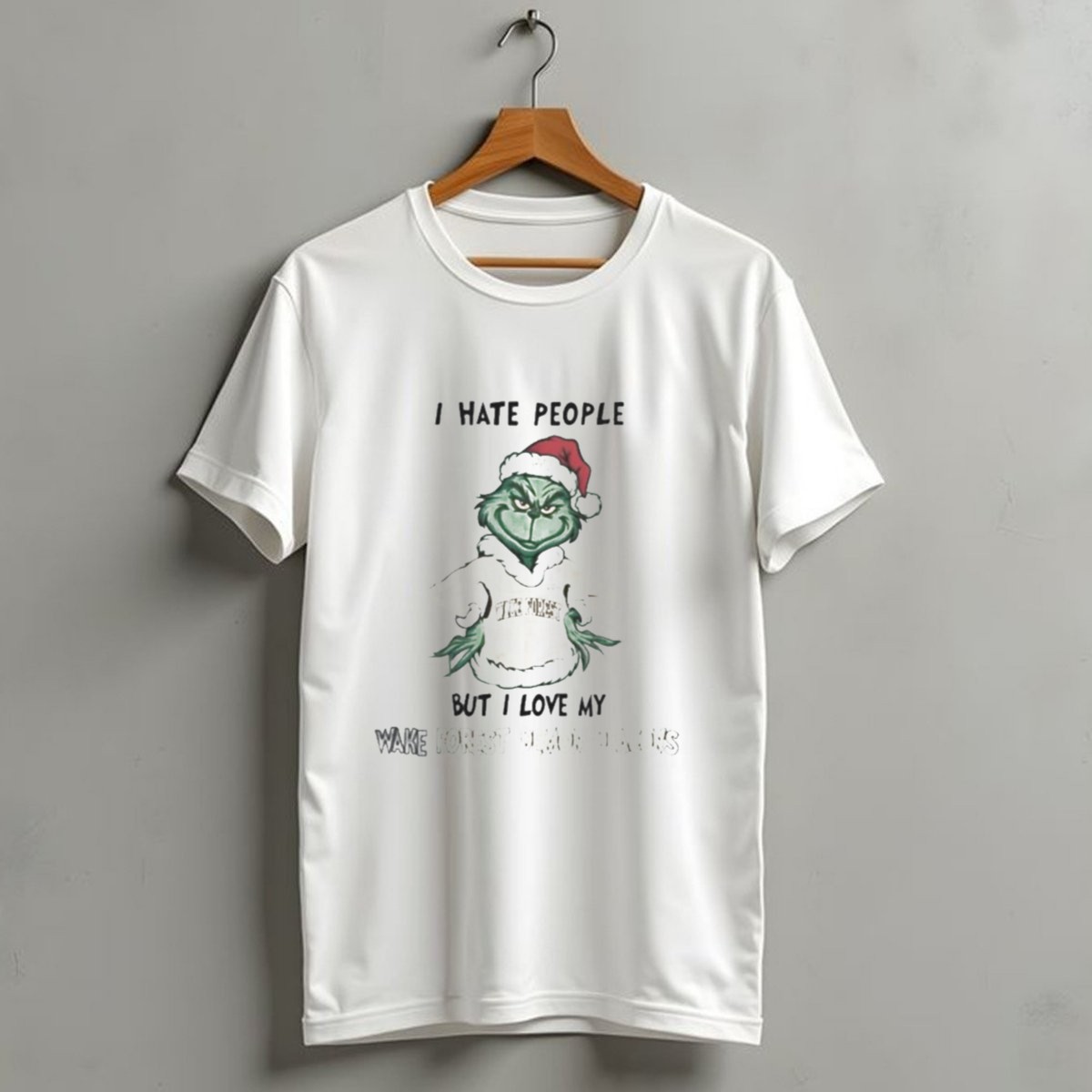 Celebrate the holiday season with a twist of humor in our “I Hate People But I Love My Wake Forest Demon Deacons Grinch Christmas T-Shirt”. Perfect for college students, alumni, or any dedicated fan of the Wake Forest Demon Deacons, this shirt combines festive cheer with a playful edge. Ideal for casual wear, themed events, or just lounging around during the holidays, it showcases a unique fan-made design printed right here in the USA, making it a standout addition to your wardrobe.