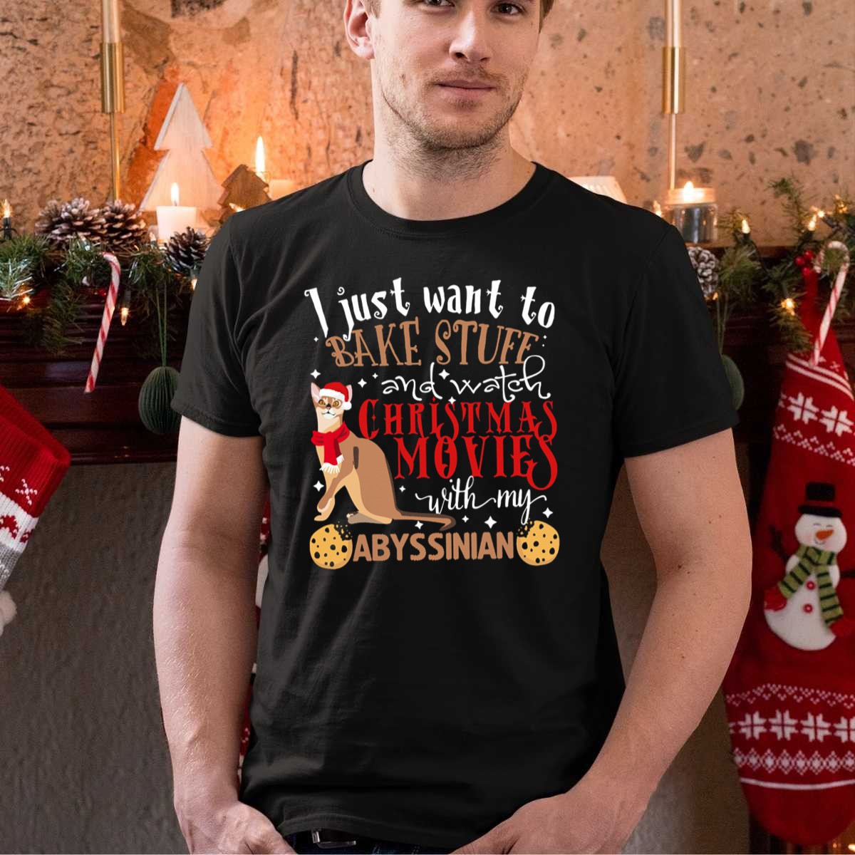 Celebrate your love for baking and cozy movie nights with your feline friend in our “I Just Want To Bake Stuff And Watch Christmas Movies With My Abyssinian Cat” T-shirt! This fan-made design is perfect for cat lovers and baking enthusiasts alike, making it a great choice for casual outings, themed events, or simply lounging at home. Crafted with care and printed in the USA, this shirt combines comfort with a fun festive spirit that will make you the hit of any holiday gathering.