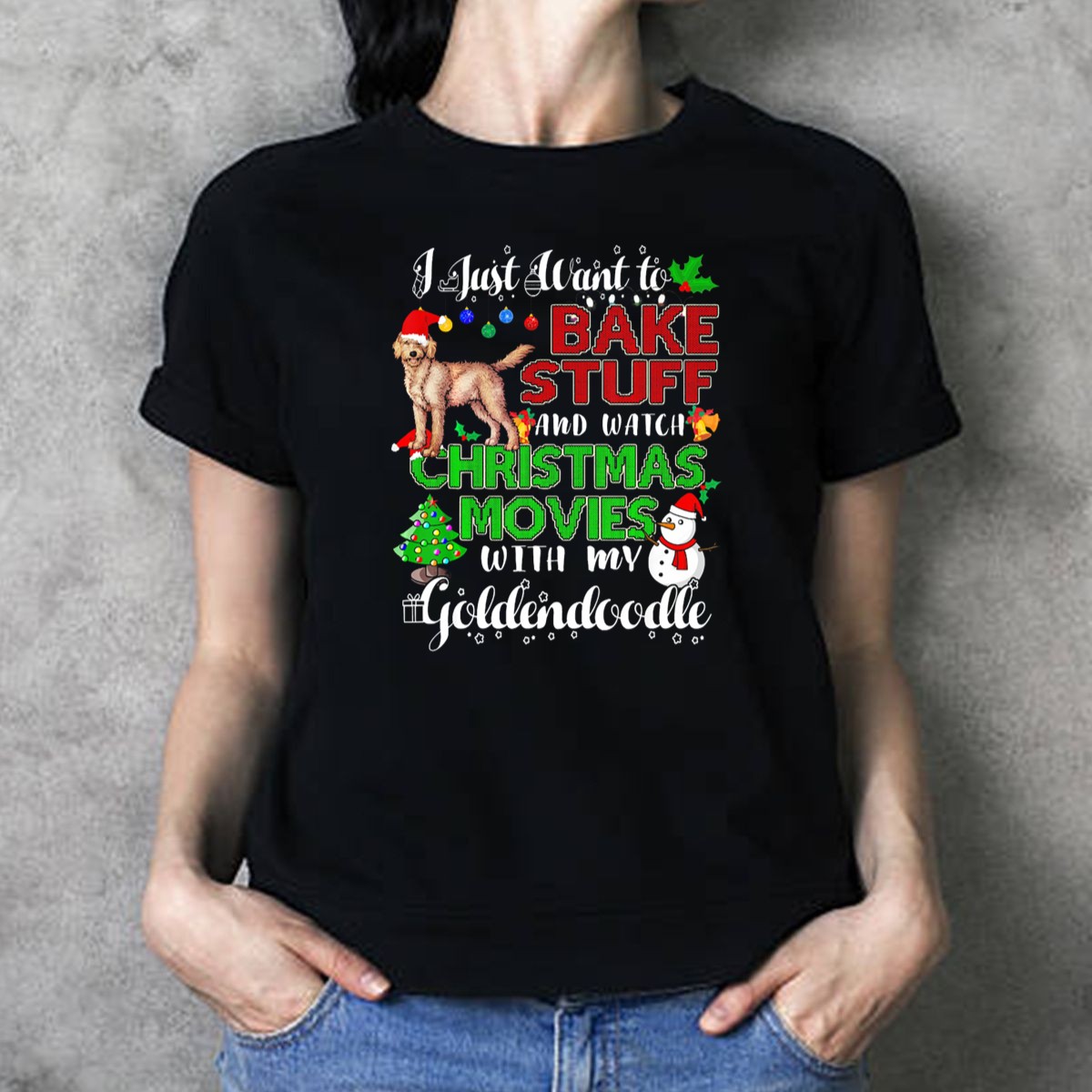 I Just Want To Bake Stuff And Watch Christmas Movies With My Goldendoodle T-Shirt