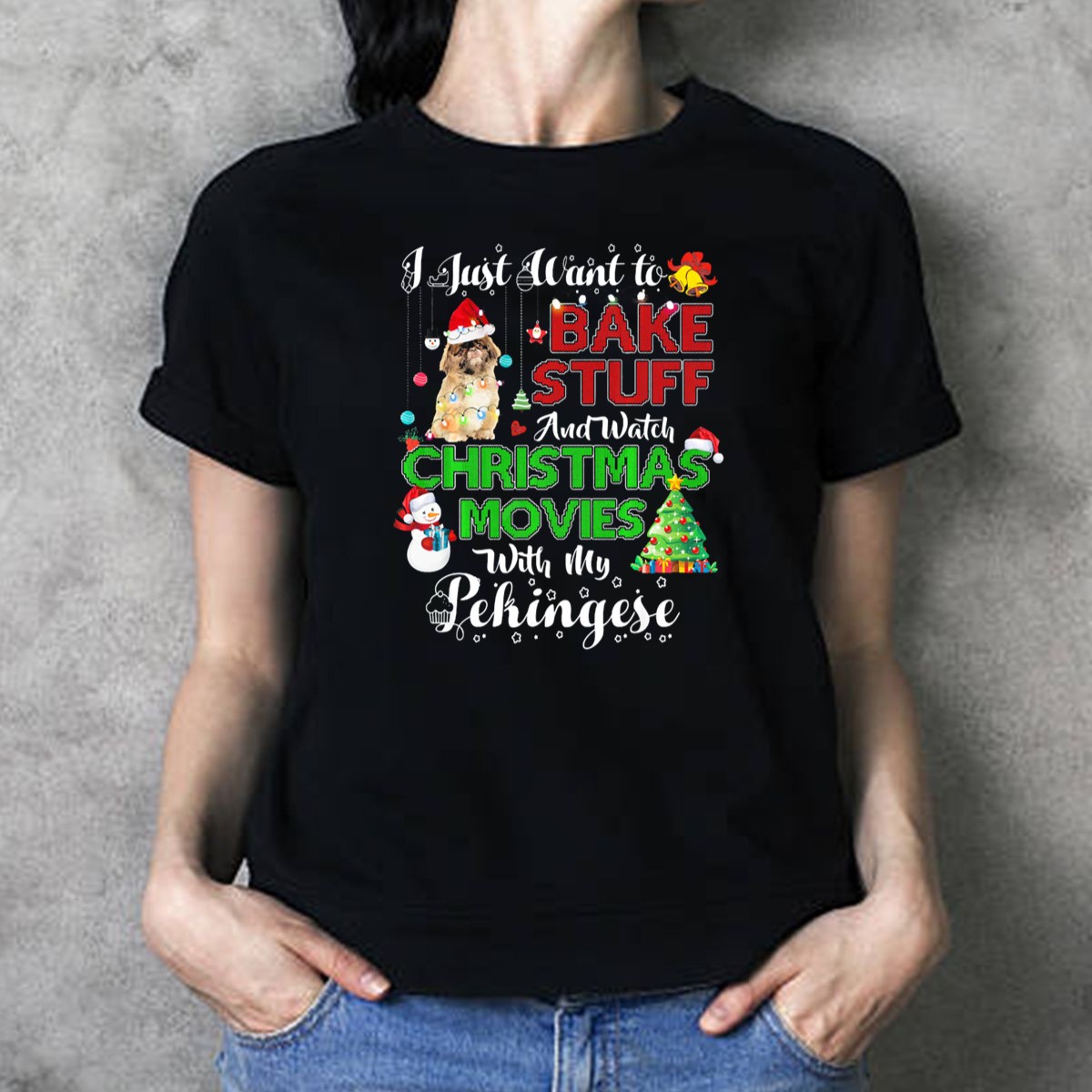 Celebrate your love for baking and holiday cheer with our “I Just Want To Bake Stuff And Watch Christmas Movies With My Pekingese” T-shirt! Perfect for dog lovers and baking enthusiasts alike, this shirt brings joy to any casual occasion, whether you’re hosting a festive gathering or simply enjoying a cozy day at home. Made for comfort and style, it features a fan-made design printed in the USA that showcases your passion in a fun and unique way.
