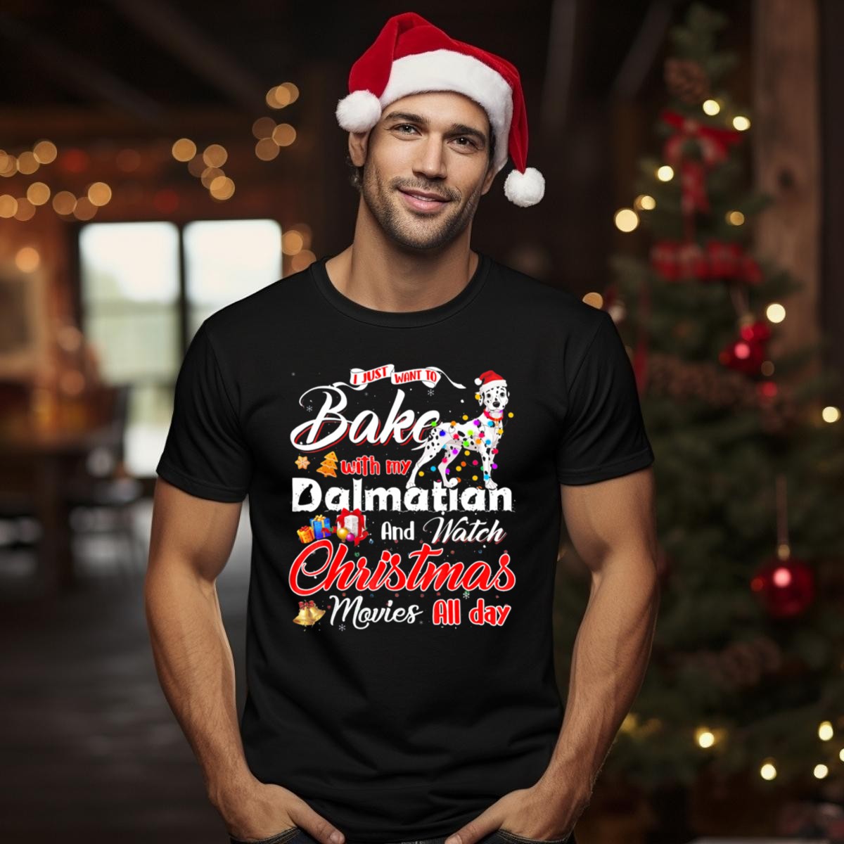 Celebrate your love for baking and cozy movie marathons with your furry friend in our “I Just Want To Bake With My Dalmatian And Watch Christmas Movies All Day” T-shirt! This fan-made design is perfect for dog lovers and holiday enthusiasts alike, making it an ideal choice for casual wear, themed events, or just lounging around at home. Made with comfort in mind, this shirt will keep you feeling great as you whip up your favorite holiday treats!