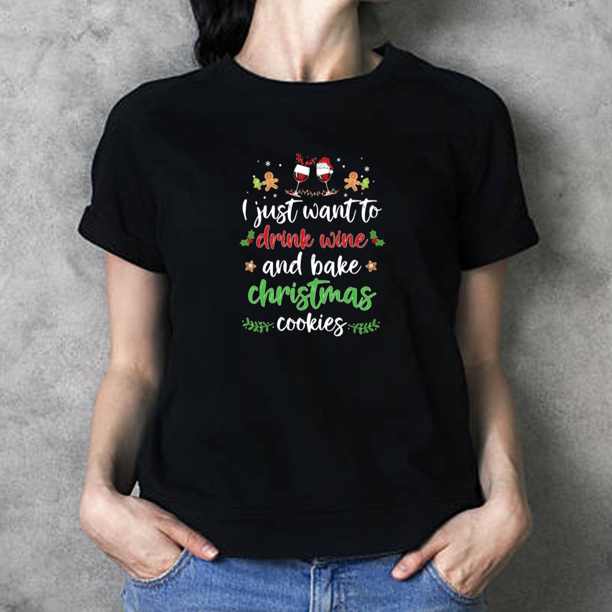Embrace the festive spirit with our “I Just Want To Drink Wine And Bake Christmas Cookies With Gingerbread Men And Santa Hats” T-shirt! Perfect for holiday gatherings, cozy nights in, or baking sessions with friends and family, this shirt combines humor and cheer in a fan-made design that captures the joy of the season. Made for those who love to celebrate Christmas in style, it’s a delightful addition to your wardrobe that will surely spark smiles and conversations.