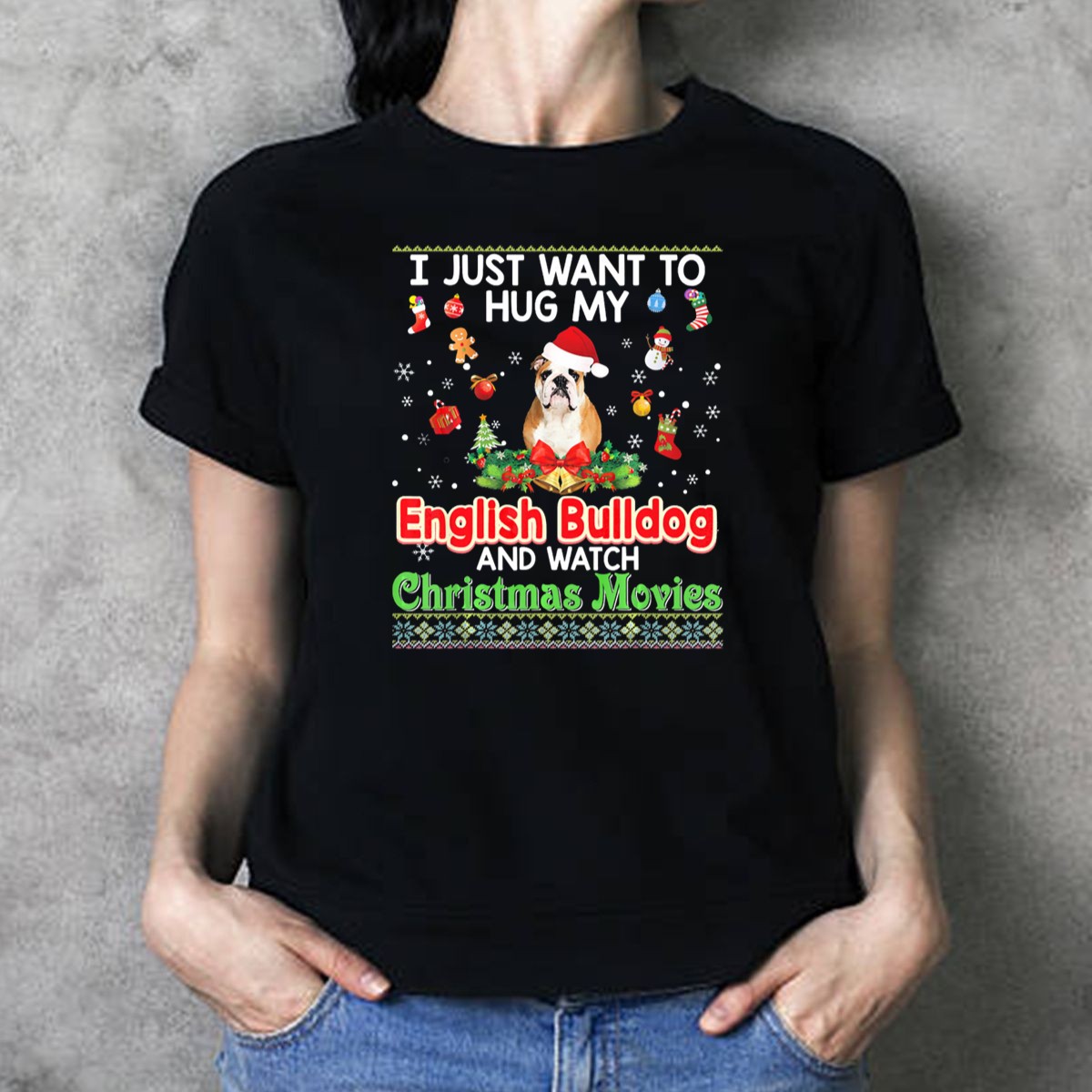 Celebrate your love for your English Bulldog this holiday season with our delightful “I Just Want To Hug My English Bulldog And Watch Christmas Movies” T-shirt! Perfect for dog lovers and movie enthusiasts alike, this shirt adds a cozy charm to your casual wear. Whether you’re snuggling up at home or enjoying themed events, this fan-made design is a fun way to express your passion while staying comfortable and stylish.