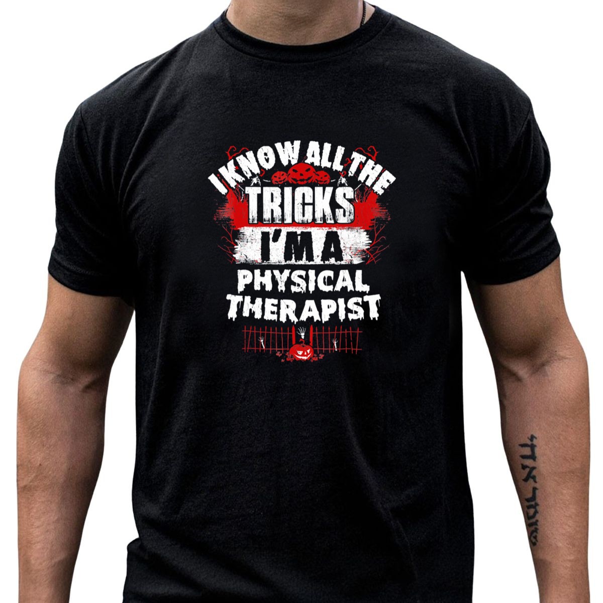 Embrace the spirit of Halloween with our “I Know All The Tricks I’m A Physical Therapist” T-shirt, featuring a playful design of pumpkins and skeletons that perfectly captures the festive mood! Ideal for physical therapists or anyone in the health profession, this shirt is a fun way to showcase your passion while celebrating the season. Whether you’re at a themed event, casual outing, or just enjoying daily wear, this unique fan-made design printed in the USA is sure to turn heads and spark conversations.