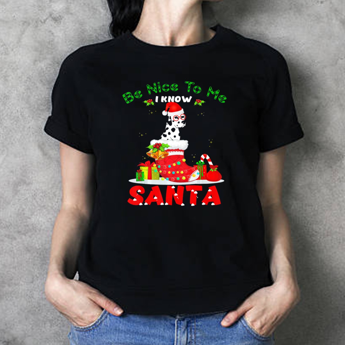 Celebrate the festive spirit with our charming “I Know Santa Dalmatian Dog In Christmas Stocking With Gifts And Candy Cane” T-shirt! Perfect for dog lovers and holiday enthusiasts alike, this playful design adds a touch of whimsy to your casual wear. Whether you’re attending a themed event, cozying up at home, or spreading holiday cheer at gatherings, this unique shirt will make you stand out in style. Made with care in the USA, it’s the ideal choice for spreading joy during the holiday season and beyond!