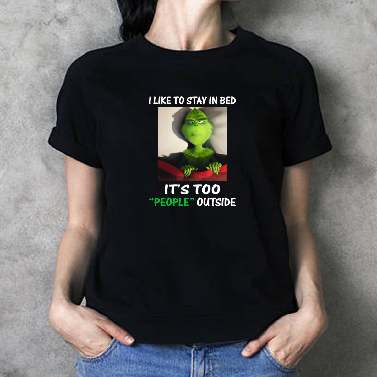 Embrace your inner Grinch with our “I Like To Stay In Bed It’s Too People Outside” T-shirt, perfect for those who prefer the comfort of home over the hustle and bustle of the outside world. This fan-made design is ideal for Christmas gatherings, cozy nights in, or just lounging around while expressing your unique holiday spirit. Crafted for both comfort and style, this shirt makes a fun statement for anyone who enjoys a bit of humor during the festive season.