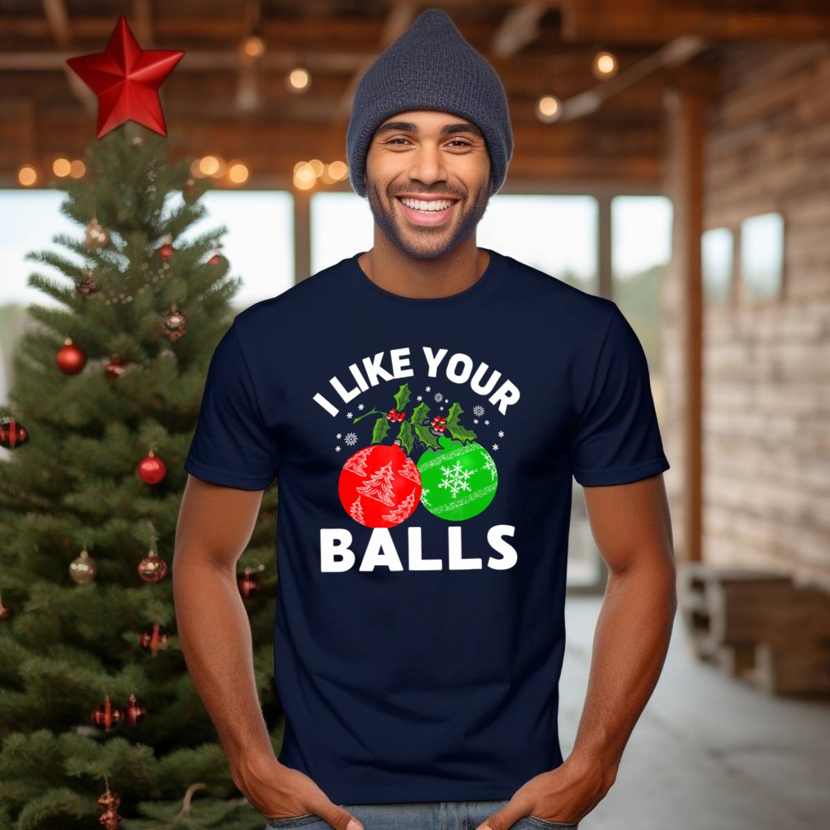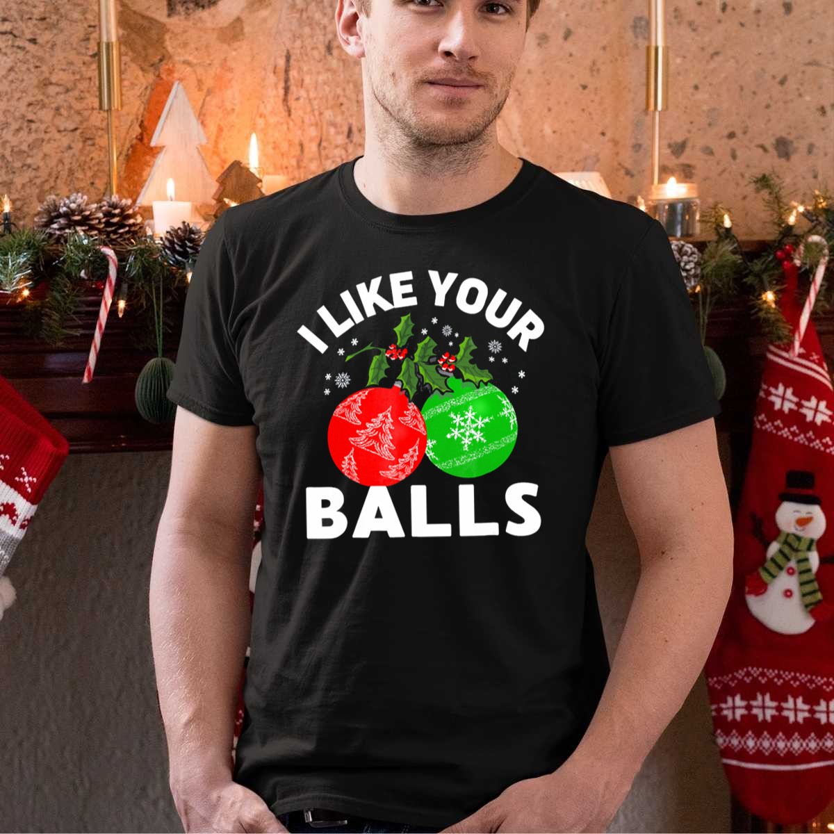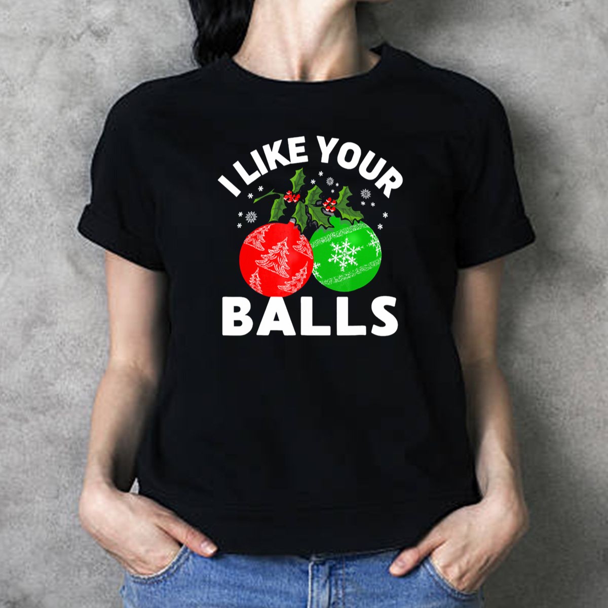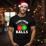 Celebrate the holiday season with a touch of humor in our “I Like Your Balls” Funny Christmas Ornament Design T-shirt. Perfect for those who love to spread joy and laughter at themed events, casual gatherings, or even daily wear. This fan-made design, printed in the USA, features a playful graphic that combines festive elements like holly and snowflakes, making it a unique addition to your Christmas wardrobe. Crafted for comfort and style, it’s an ideal choice for anyone looking to bring a smile to their friends and family this season.