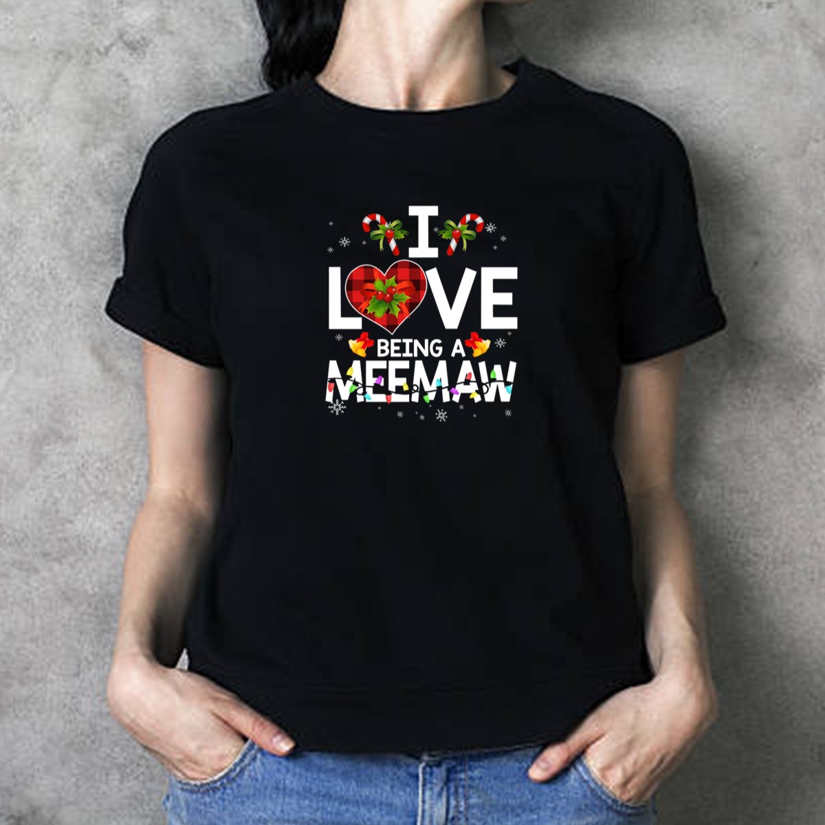 Celebrate the joy of being a meemaw this holiday season with our charming “I Love Being A Meemaw” T-shirt, featuring delightful candy canes and snowflakes. This shirt is perfect for loving grandmothers who want to spread cheer at Christmas gatherings, themed events, or simply during daily wear. Made with care and printed in the USA, it’s a unique addition to any festive wardrobe that showcases your love and pride.