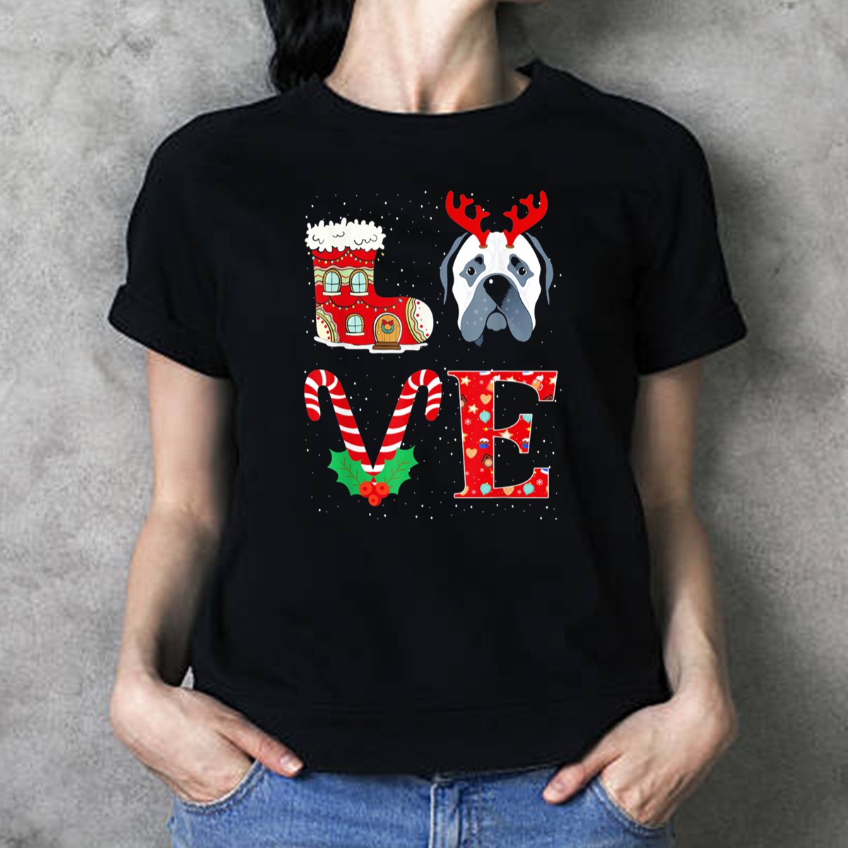 Celebrate the holiday season with our “I Love My Bullmastiff Reindeer Horns Christmas Candy Cane Boot” T-Shirt! Perfect for dog lovers and festive occasions, this fun and unique shirt showcases your love for your Bullmastiff while spreading holiday cheer. Whether you’re attending a themed event, enjoying daily casual wear, or simply snuggling up at home, this shirt is a delightful way to express your personality and love for your furry friend.