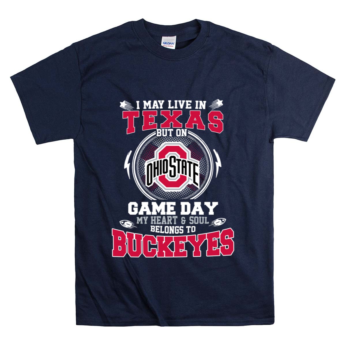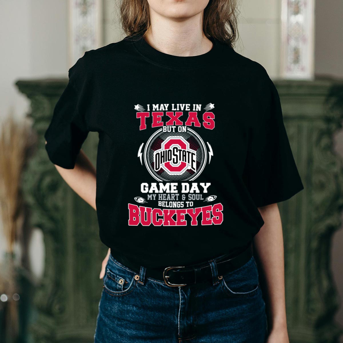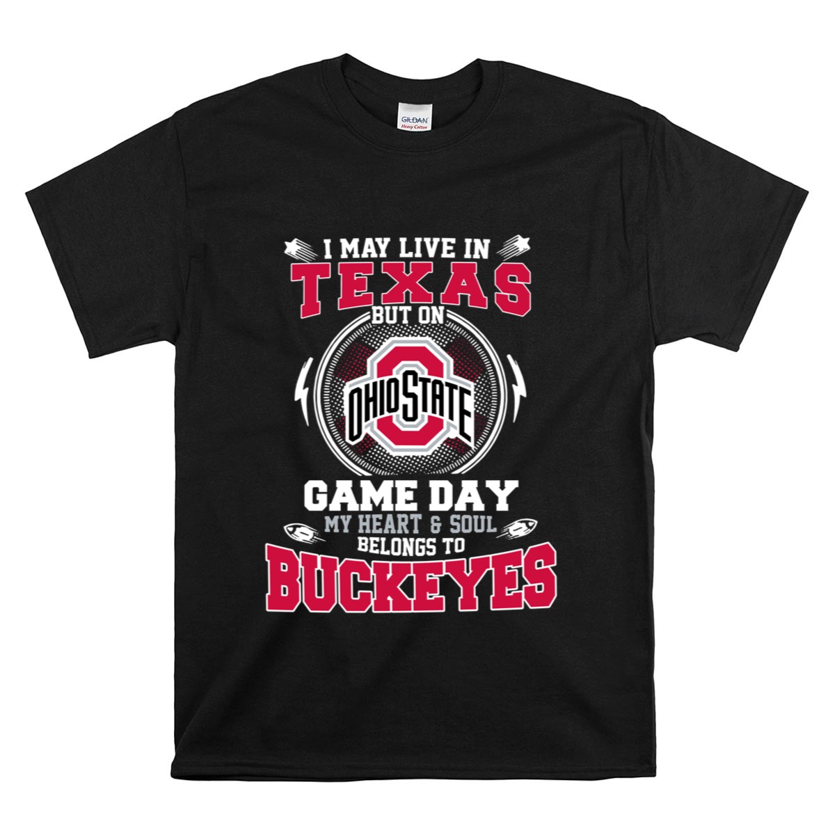 I May Live In Texas Ohio State Buckeyes But On Game Day Belong To Buckeyes Shirt