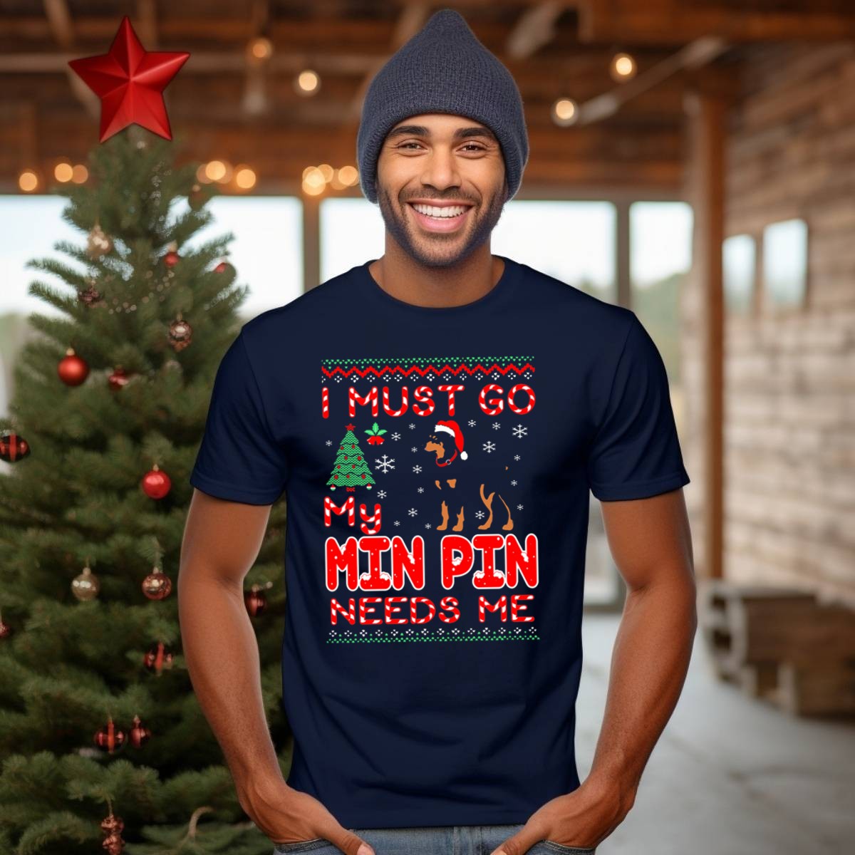 Celebrate your love for your miniature pinscher this holiday season with our “I Must Go My Min Pin Needs Me” T-shirt! Perfect for dog lovers, this fan-made design captures the spirit of companionship and festive cheer, making it an ideal choice for casual wear, themed events, or daily outings. Printed in the USA, this shirt is not just a stylish statement, but also a heartfelt tribute to your furry friend.